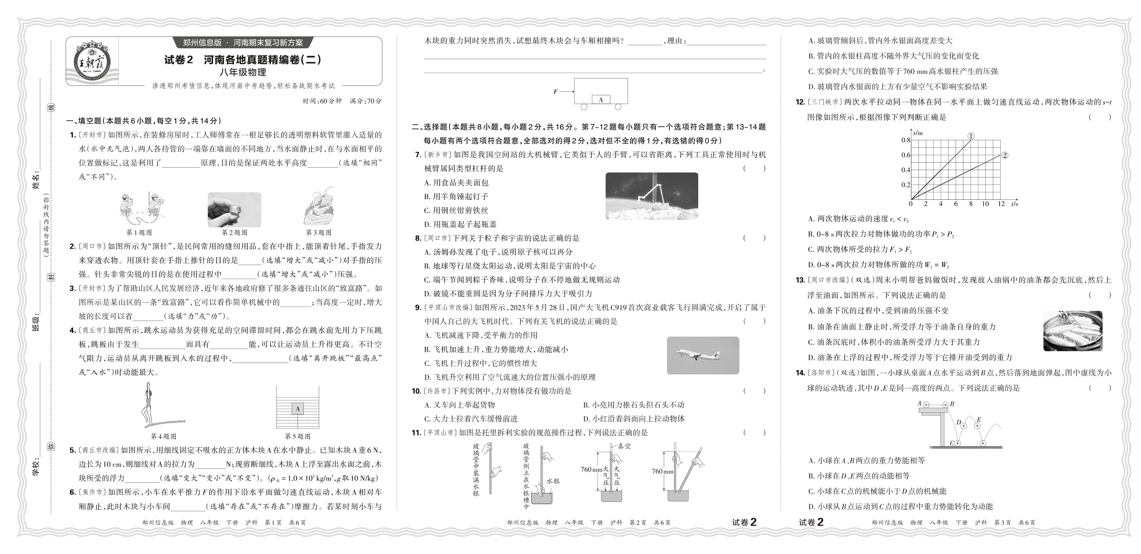2024年春河南各地真题精编(二)八年级下册期末物理(沪科版)【2】