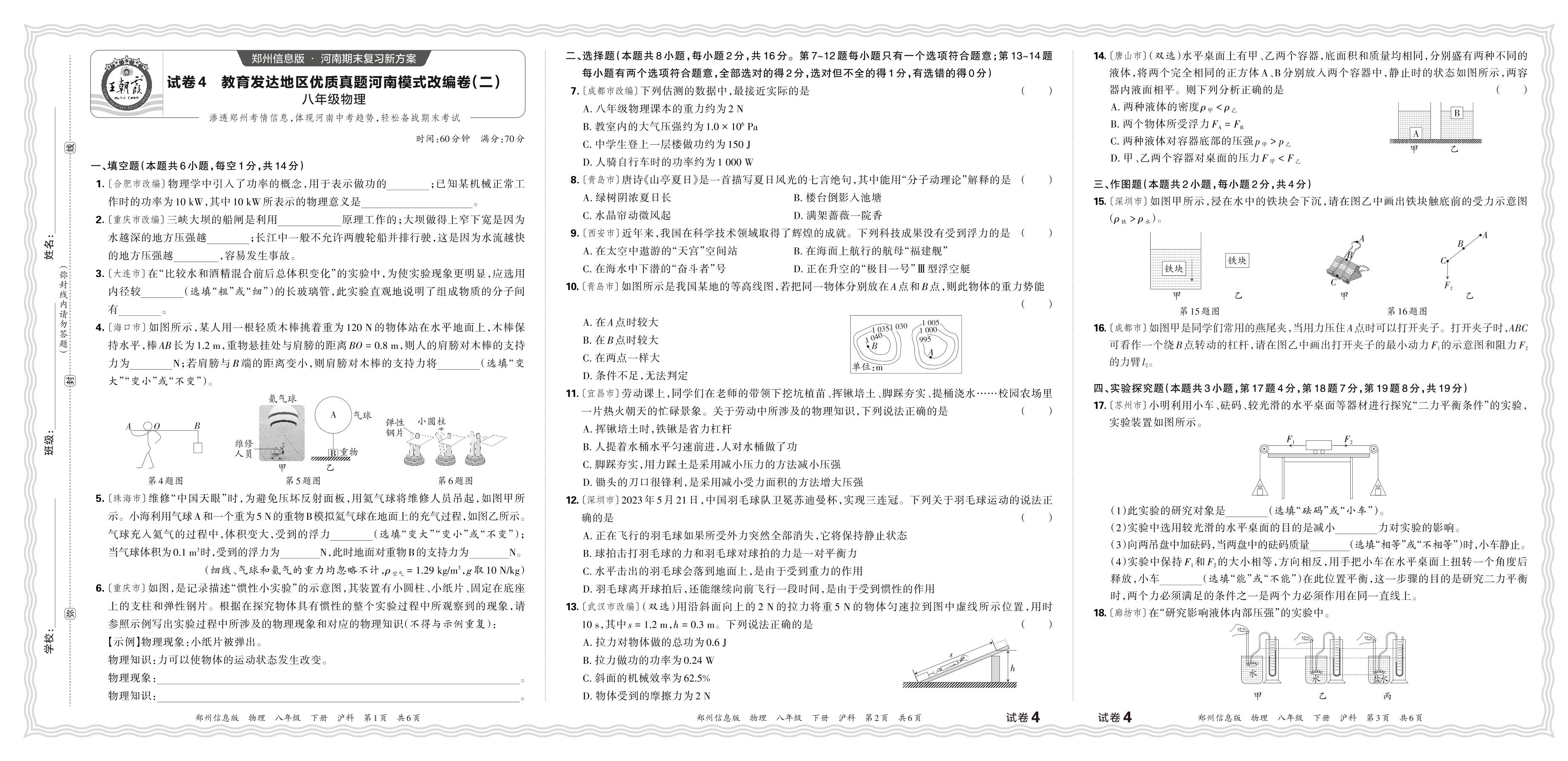 2024年春教育发达地区优质真题河南模式改编卷(二)八年级下册期末物理(沪科版)【4】