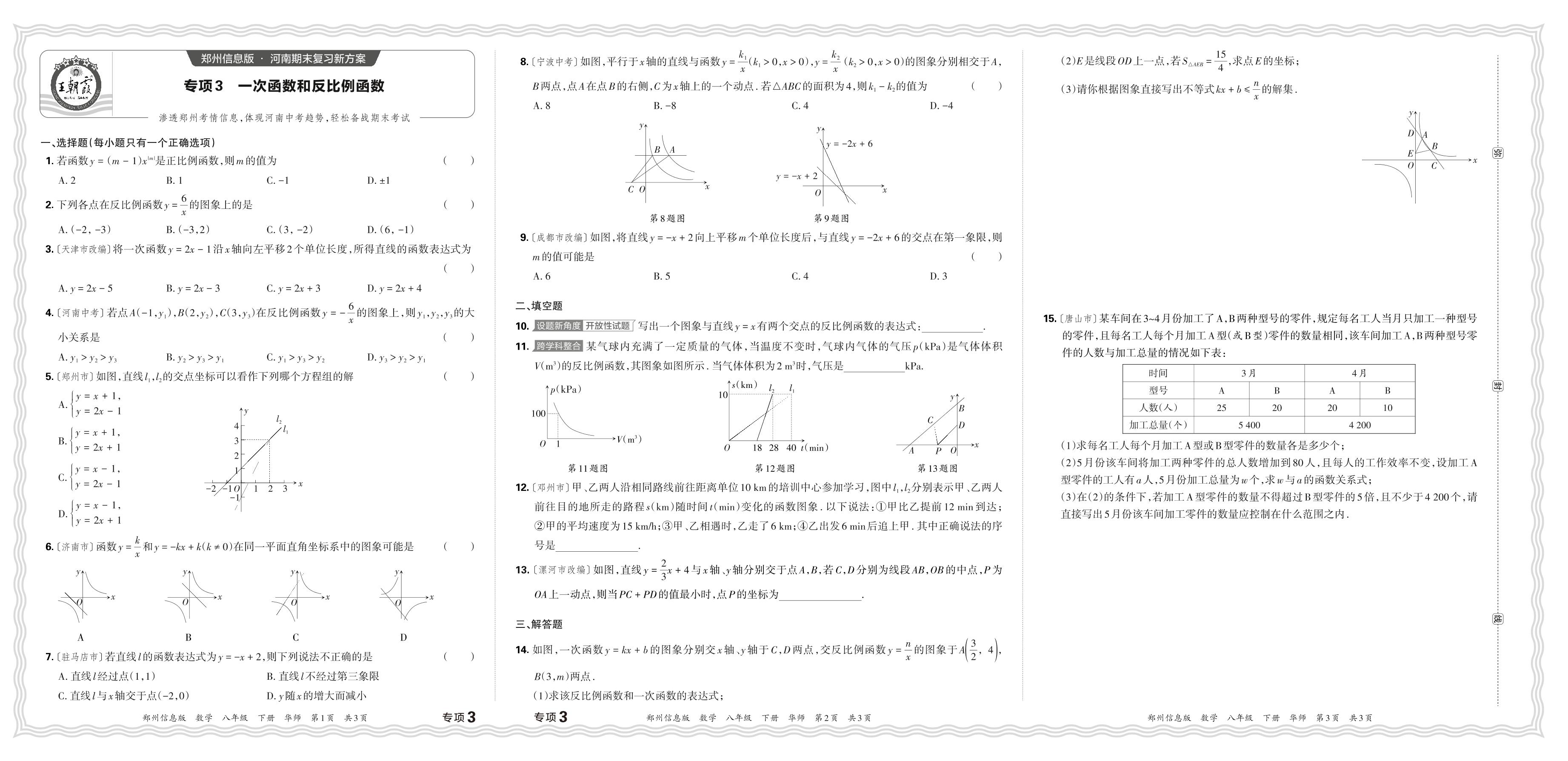 2024春下册八年级数学华师版 期末专项卷郑州版·一次函数和反比例函数【3】