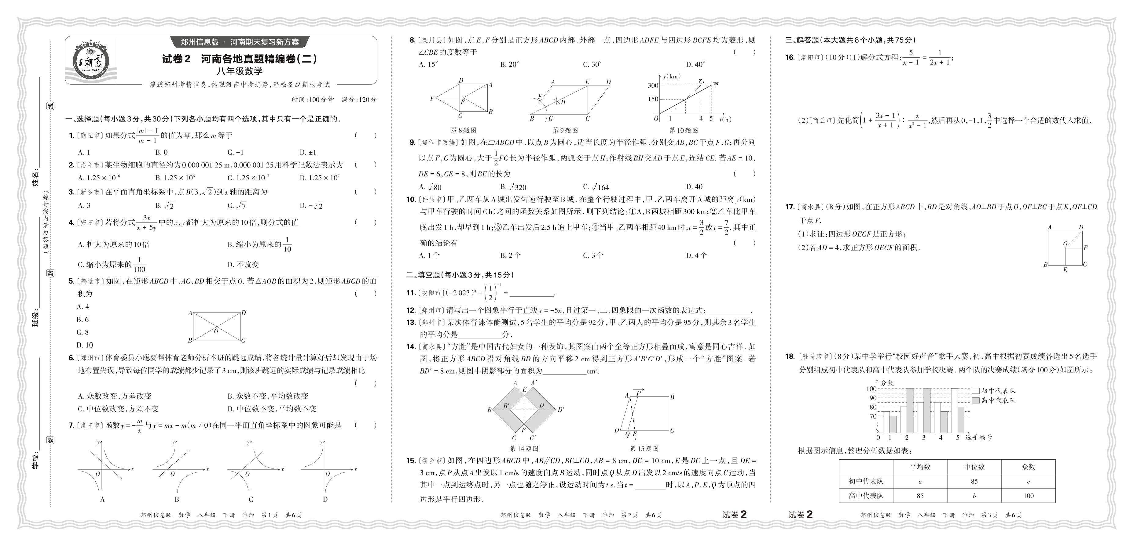 2024年春河南各地真题精编(二)八年级下册期末数学(华师版)【2】