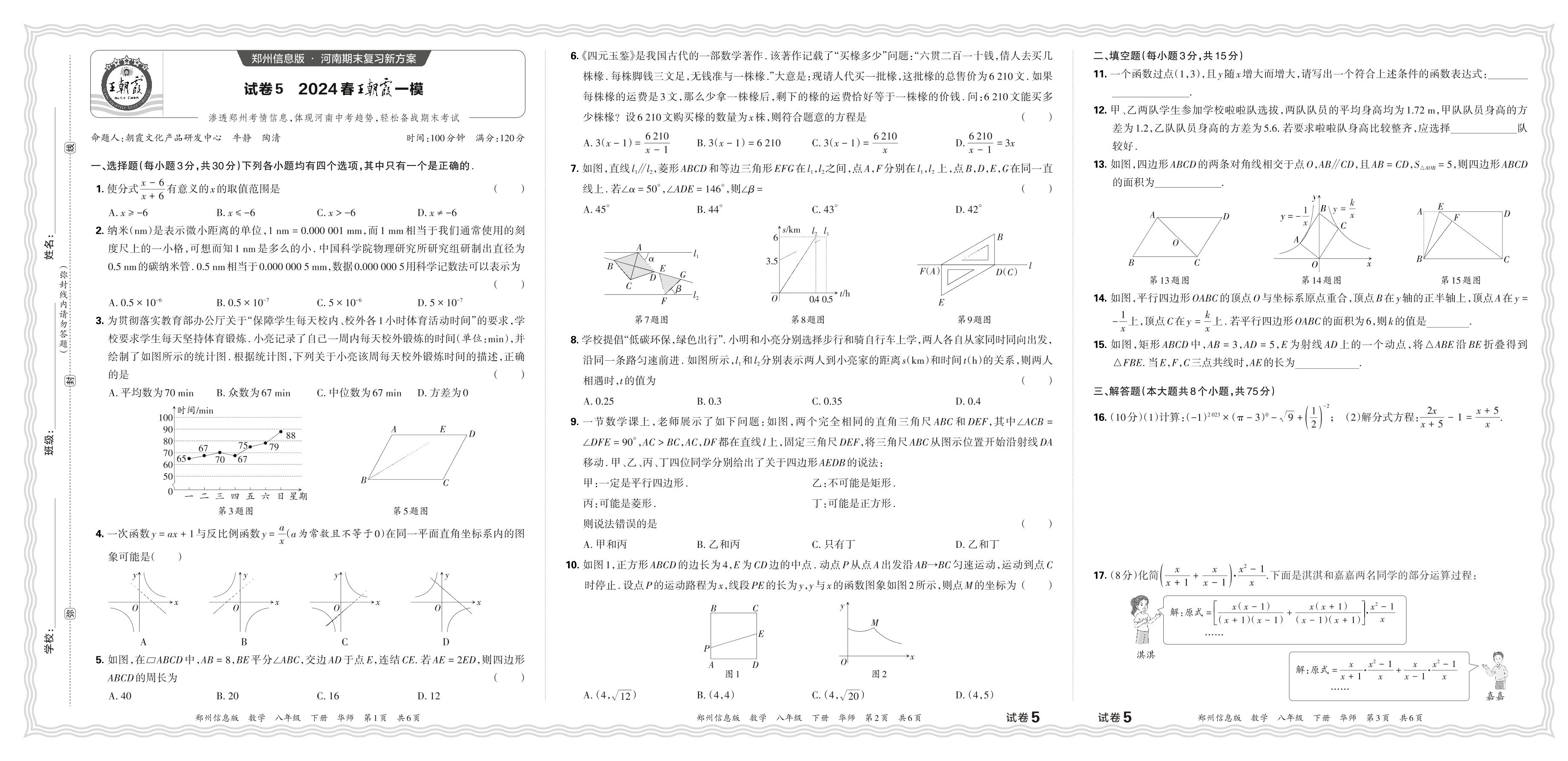 2024春下册八年级数学华师版 郑州期末王朝霞一模