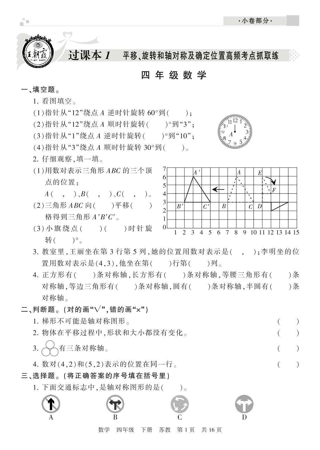王朝霞期末过课本四年级下册数学(苏教版)_R210804144201【0】
