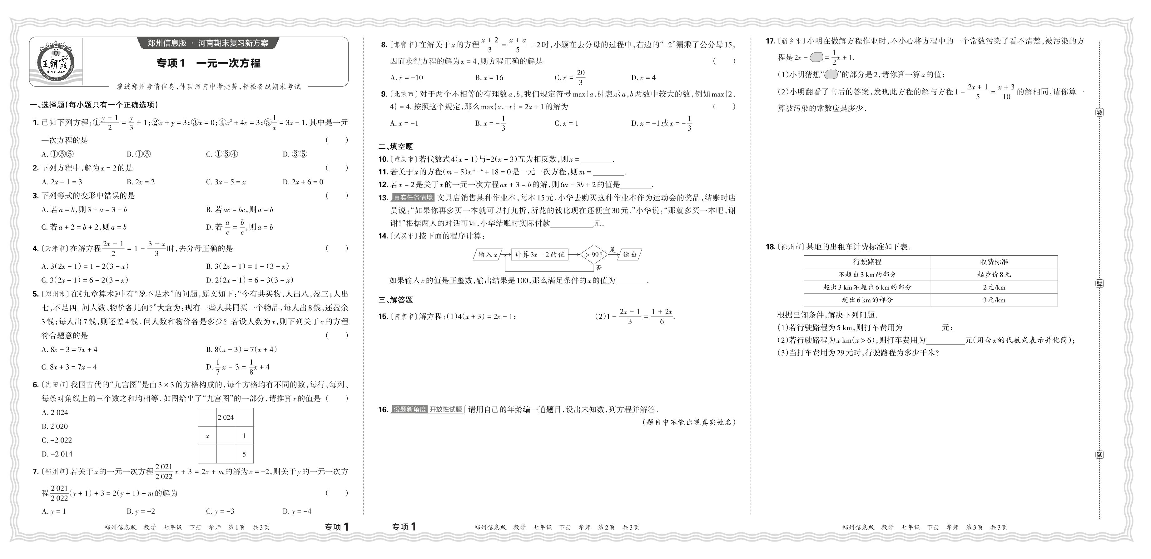 2024春下册七年级数学华师版 期末专项卷郑州版·一元一次方程【1】