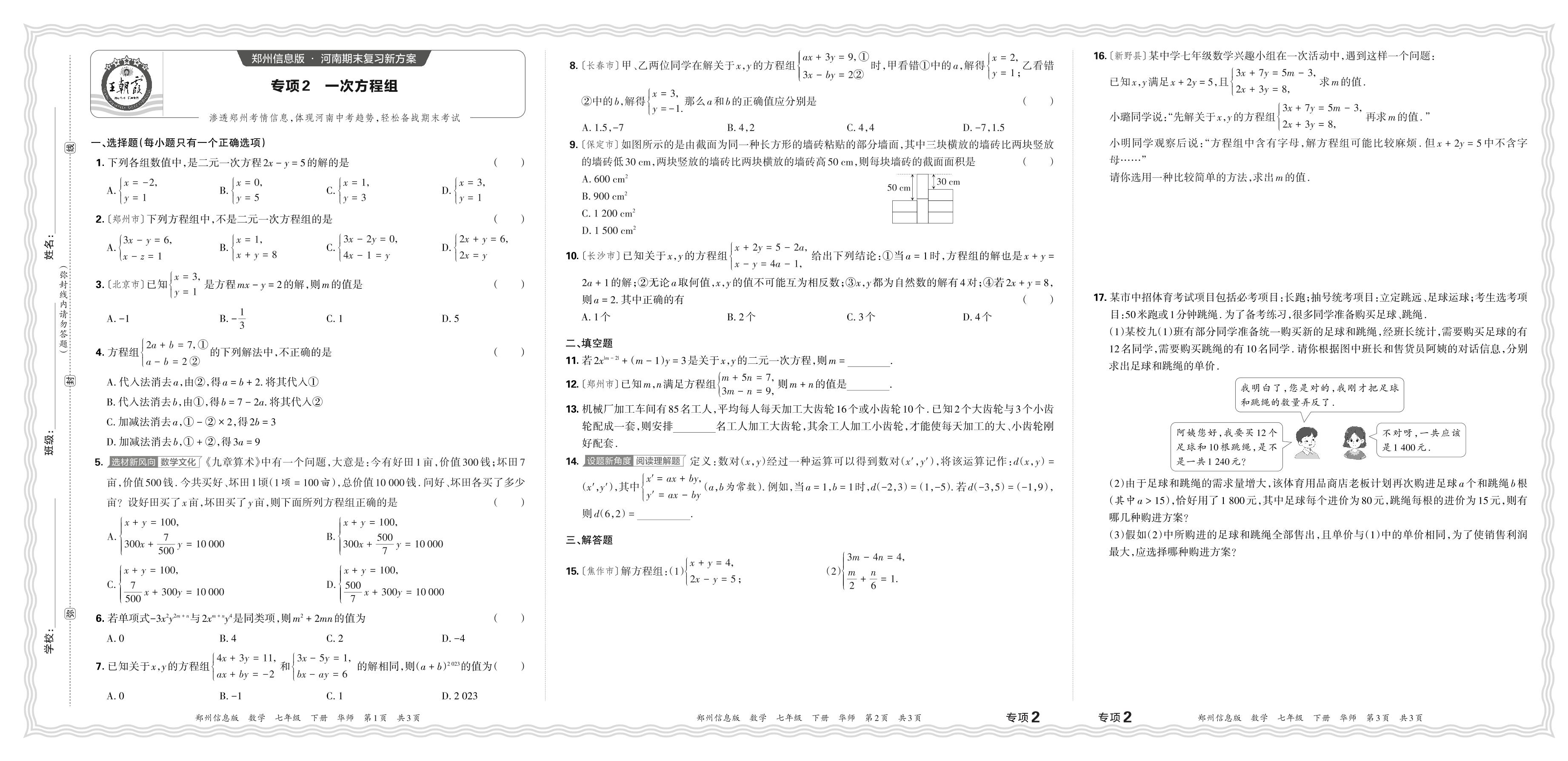 2024春下册七年级数学华师版 期末专项卷郑州版·一次方程组【2】