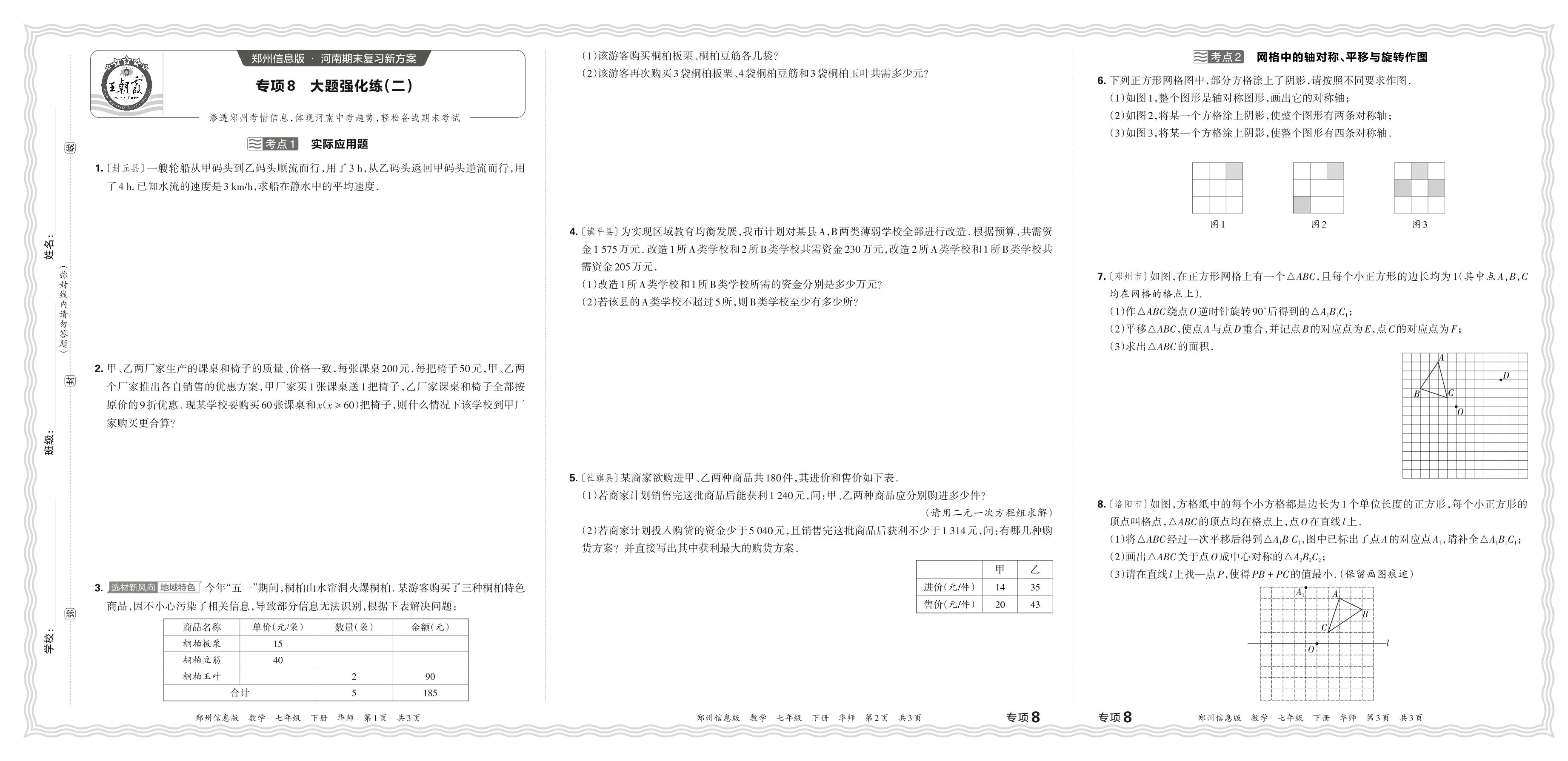 2024春下册七年级数学华师版 期末专项卷郑州版·大题强化练(二)【8】