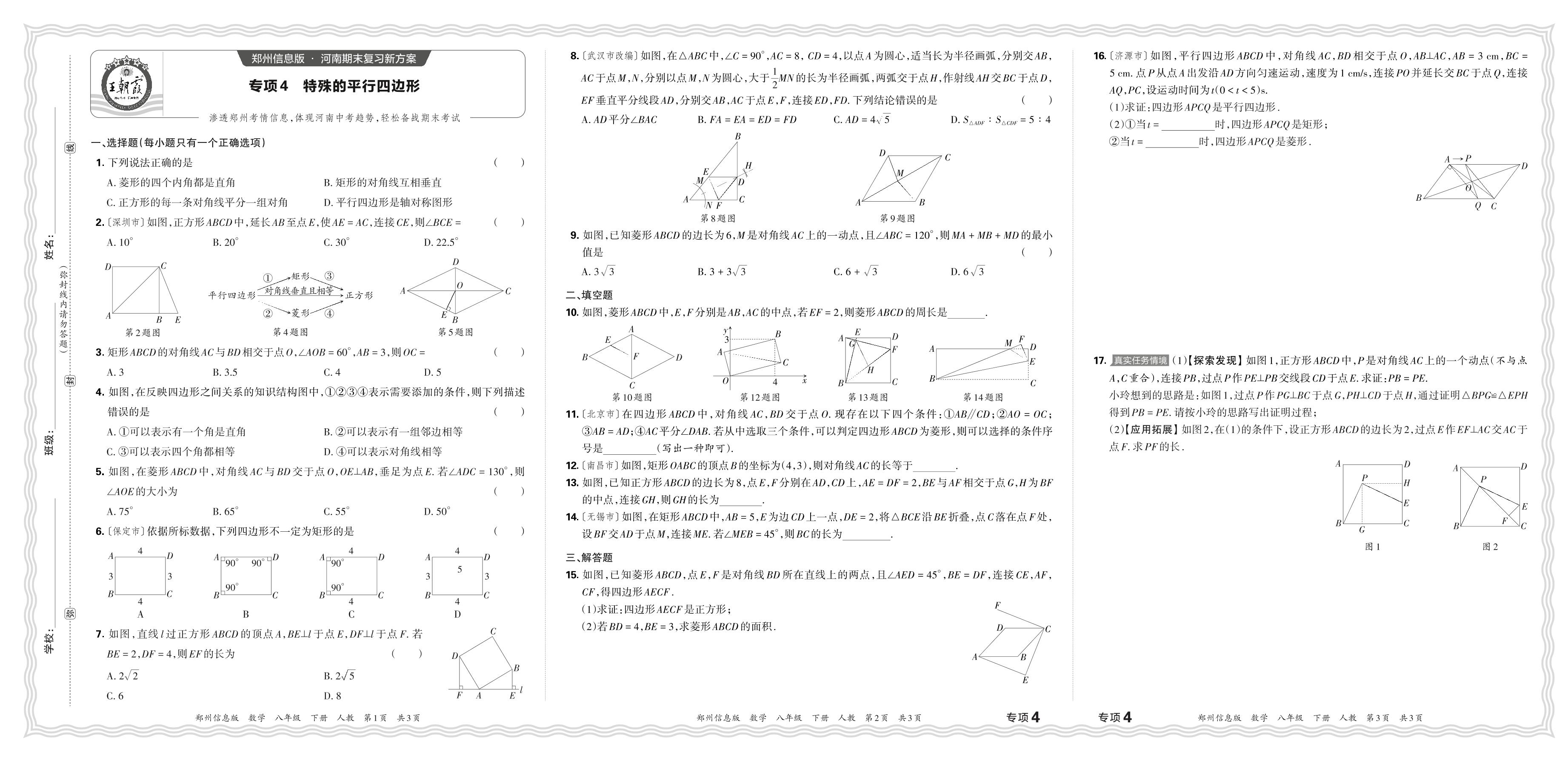 2024春下册八年级数学人教版 期末专项卷郑州版·特殊的平行四边形【4】