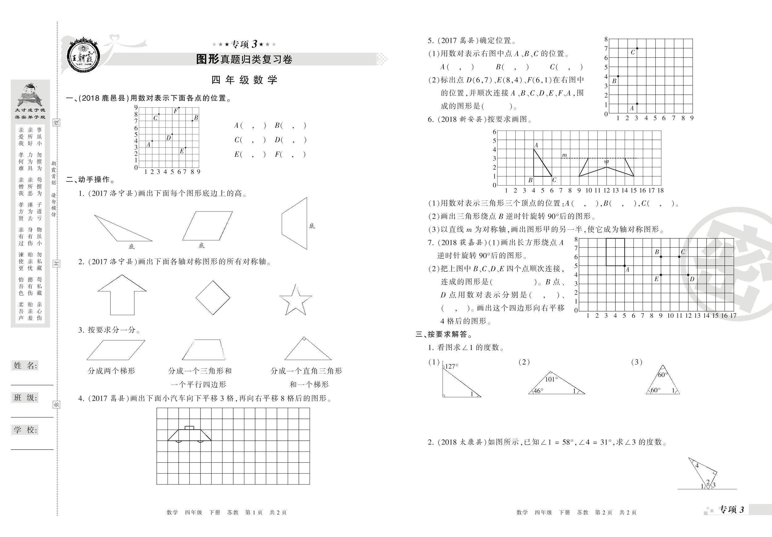 王朝霞期末专项卷——图形、解决问题真题归类复习卷四年级下册数学(苏教版)_R210804144214【0】