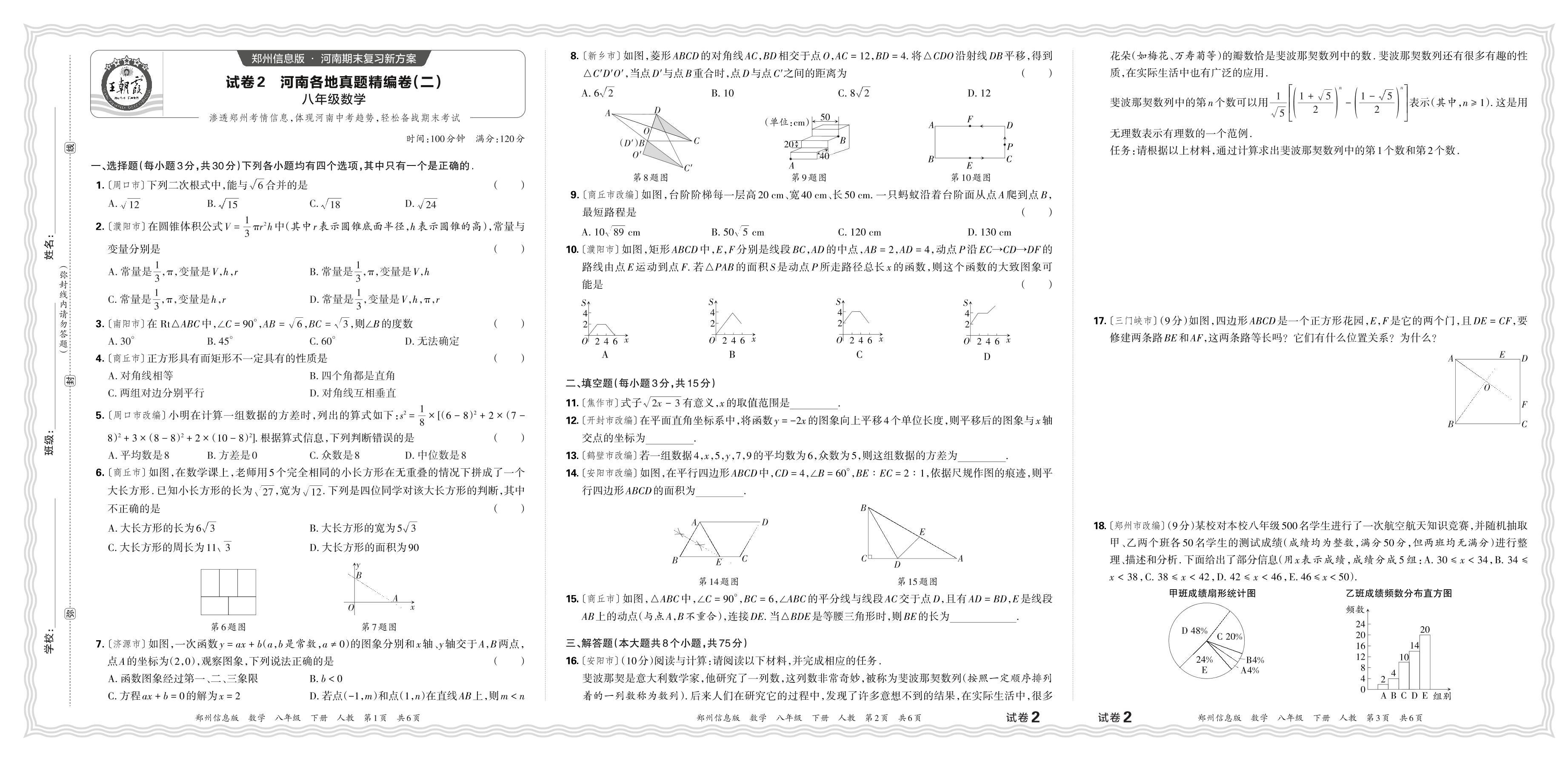 2024年春河南各地真题精编(二)八年级下册期末数学(人教版)【2】