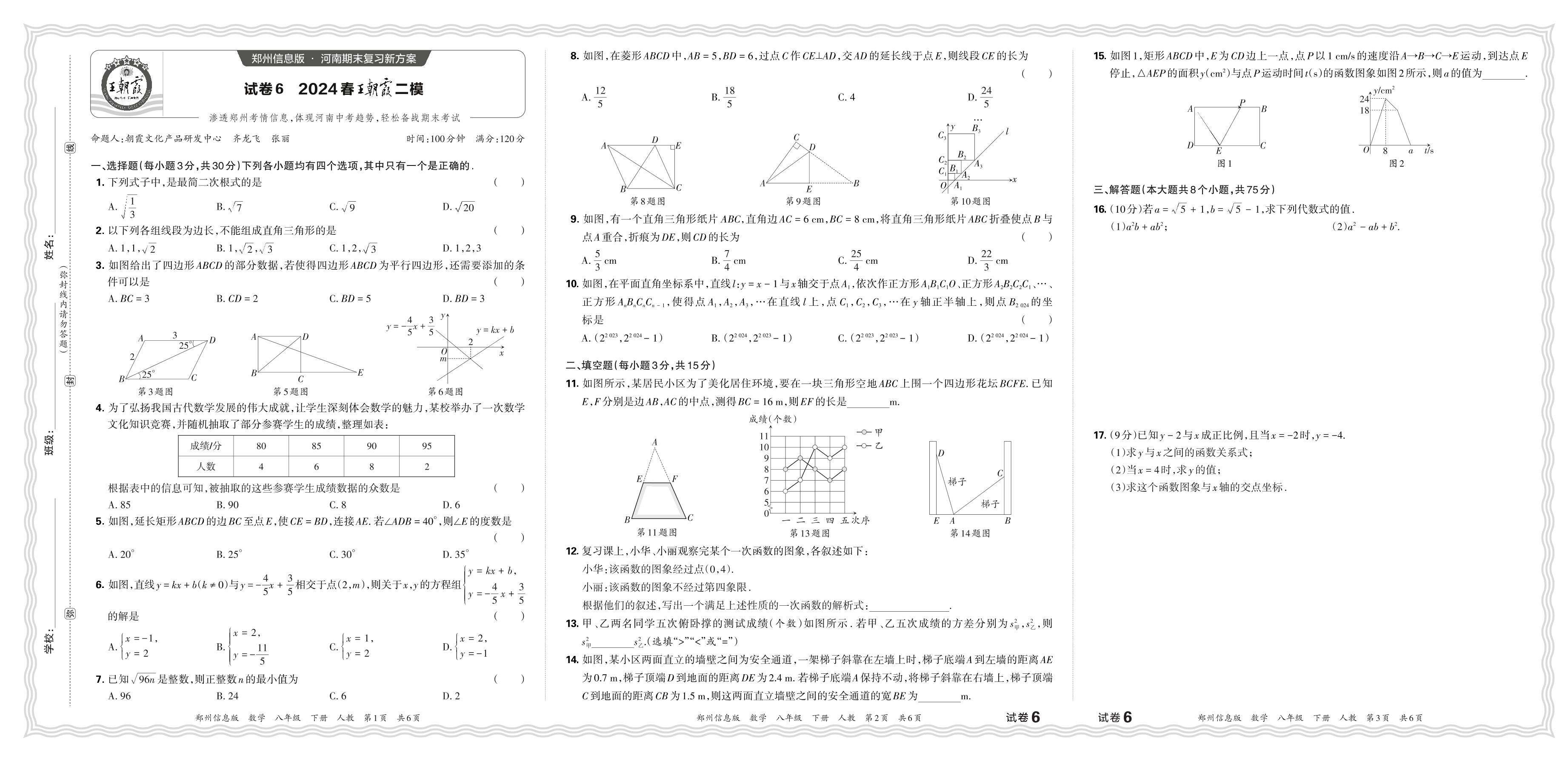 2024春下册八年级数学人教版 郑州期末王朝霞二模