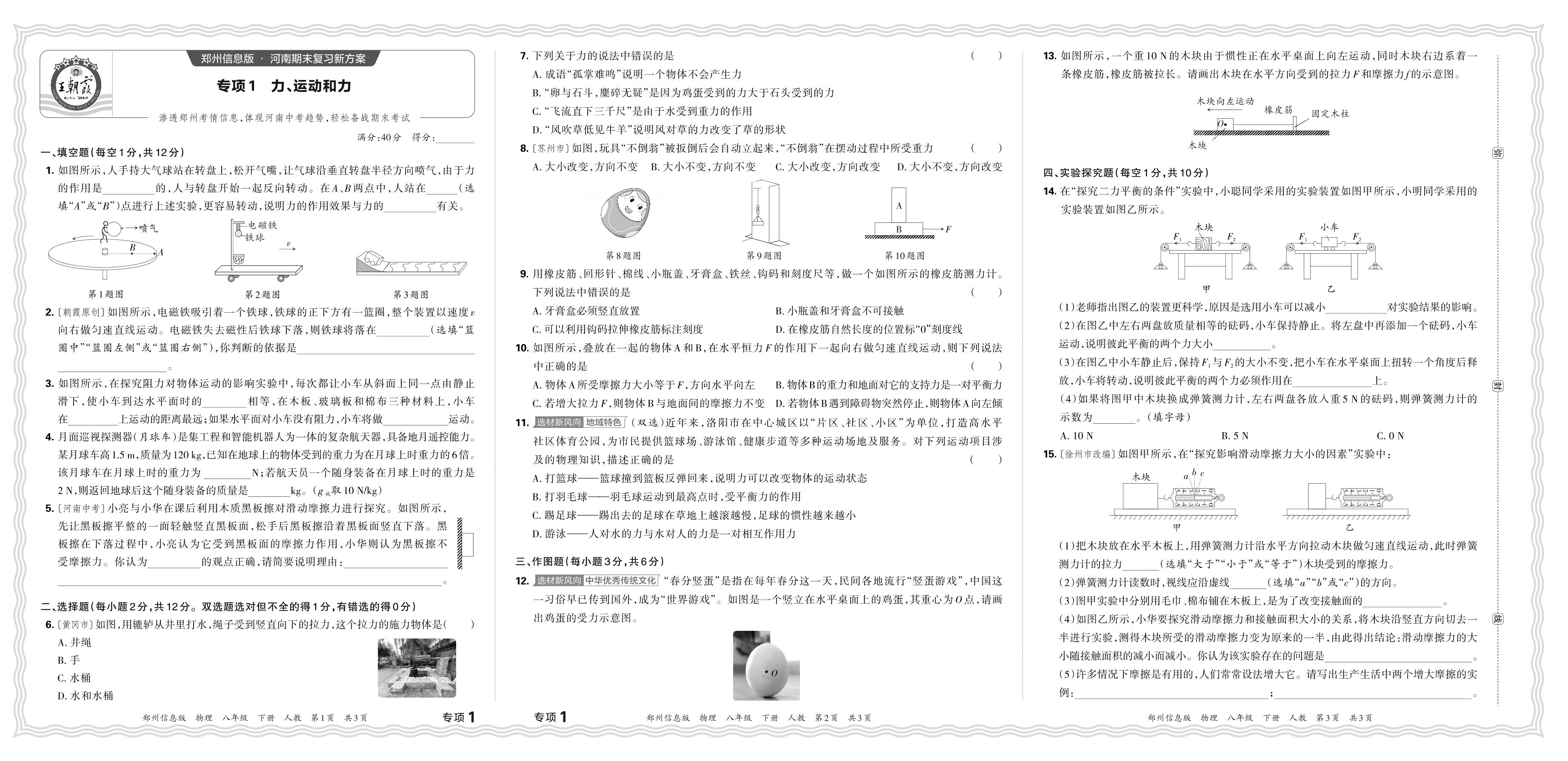 2024春下册八年级物理人教版 期末专项卷郑州版·力、运动和力【1】