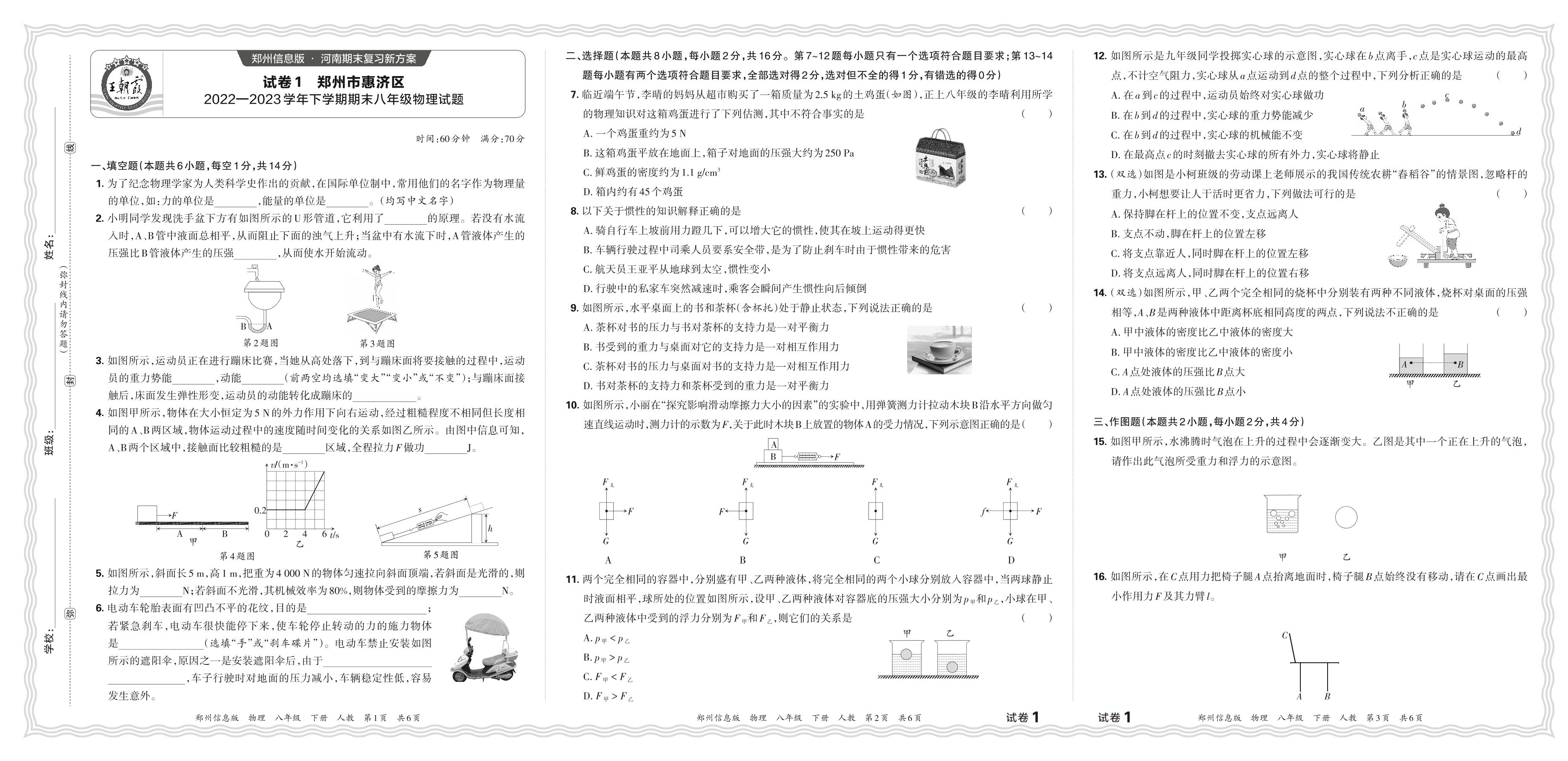 河南省郑州市惠济区2022-2023学年下学期期末八年级物理试题(人教版)【1】