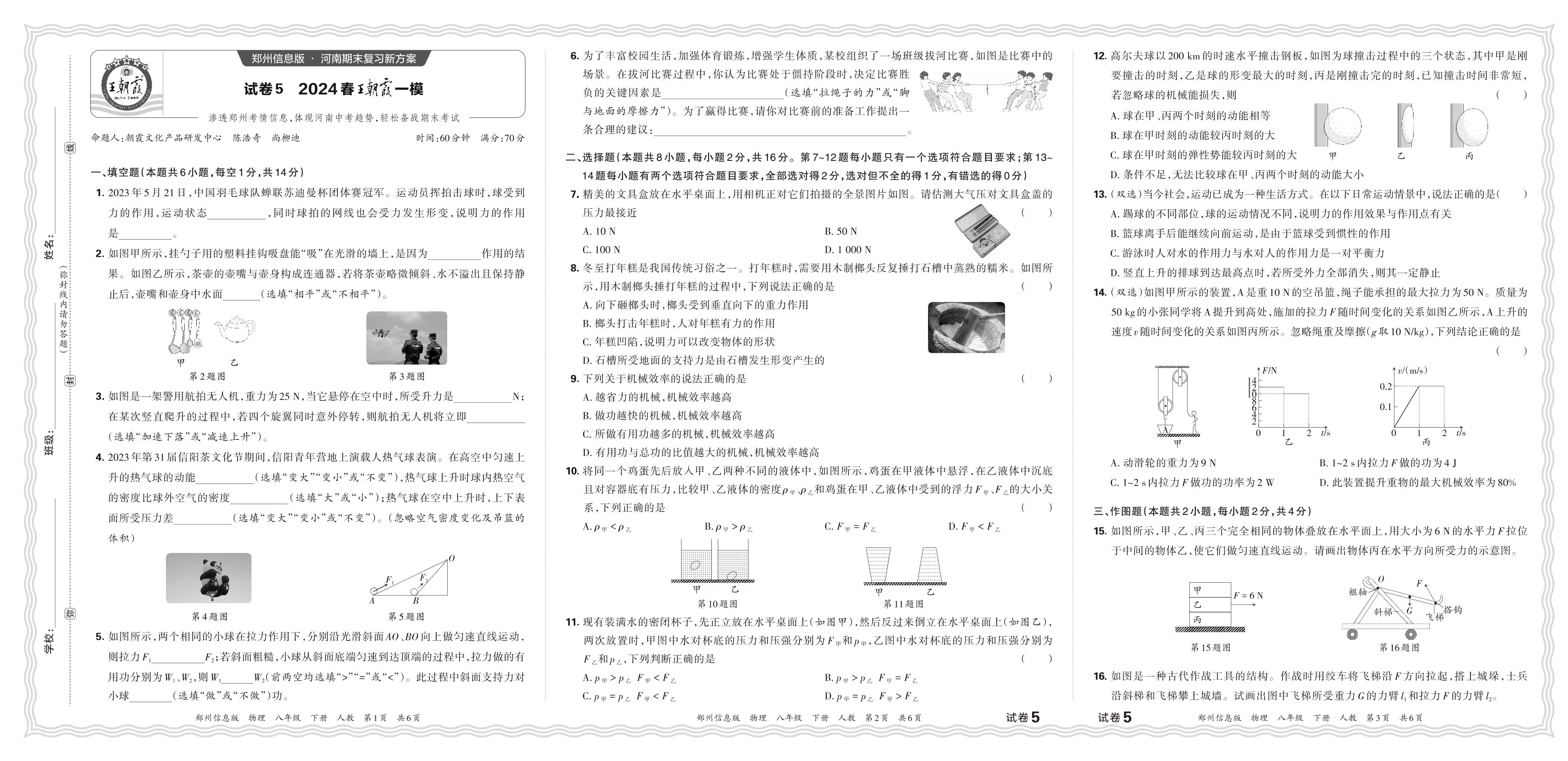 2024春下册八年级物理人教版 郑州期末王朝霞一模