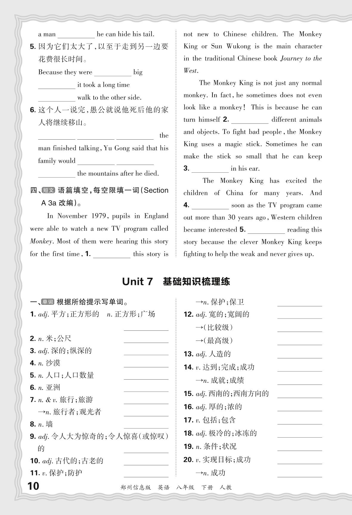 2024春下册八年级英语人教版 期末过课本郑州版·Unit 7 基础知识梳理练