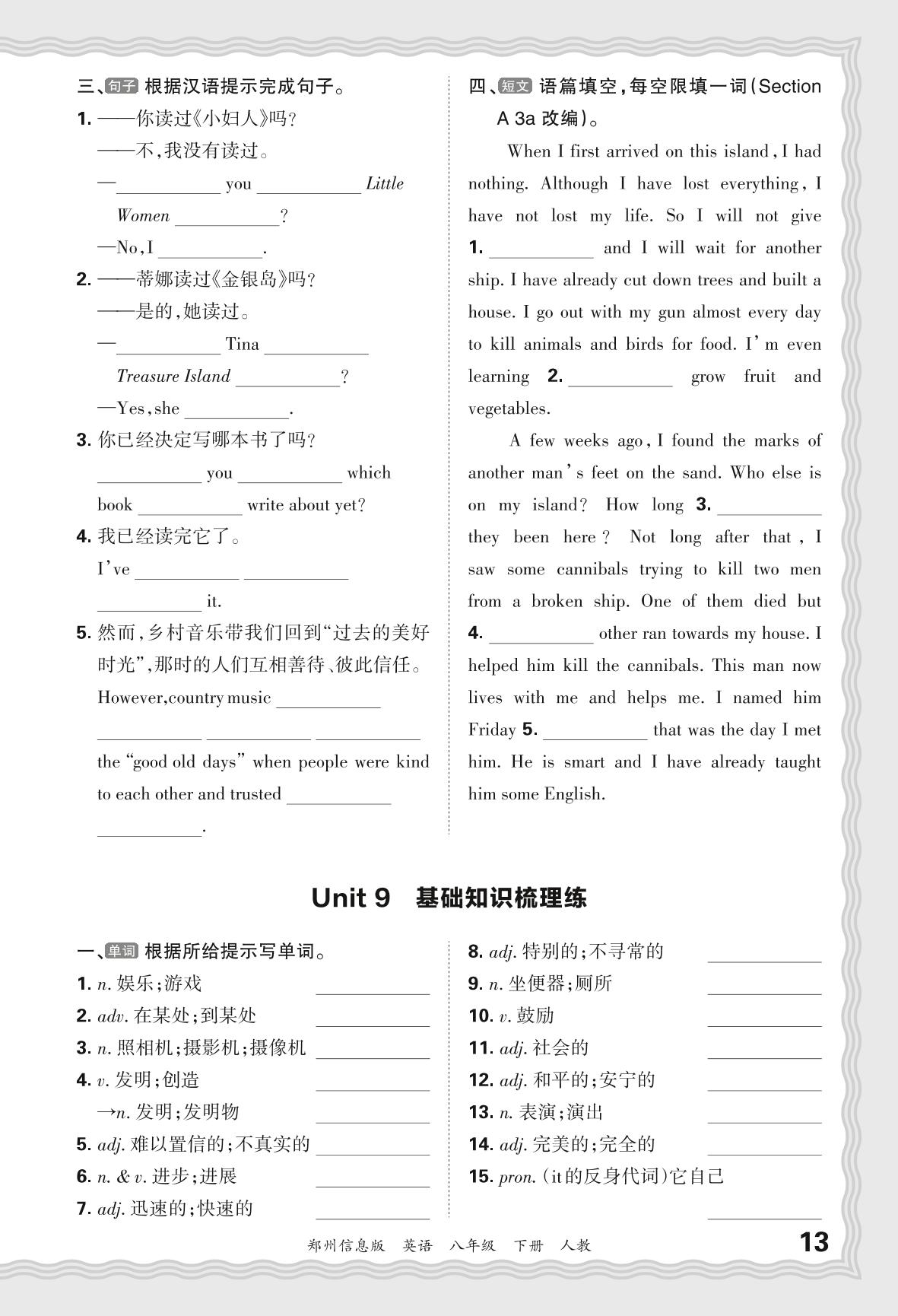 2024春下册八年级英语人教版 期末过课本郑州版·Unit 9 基础知识梳理练