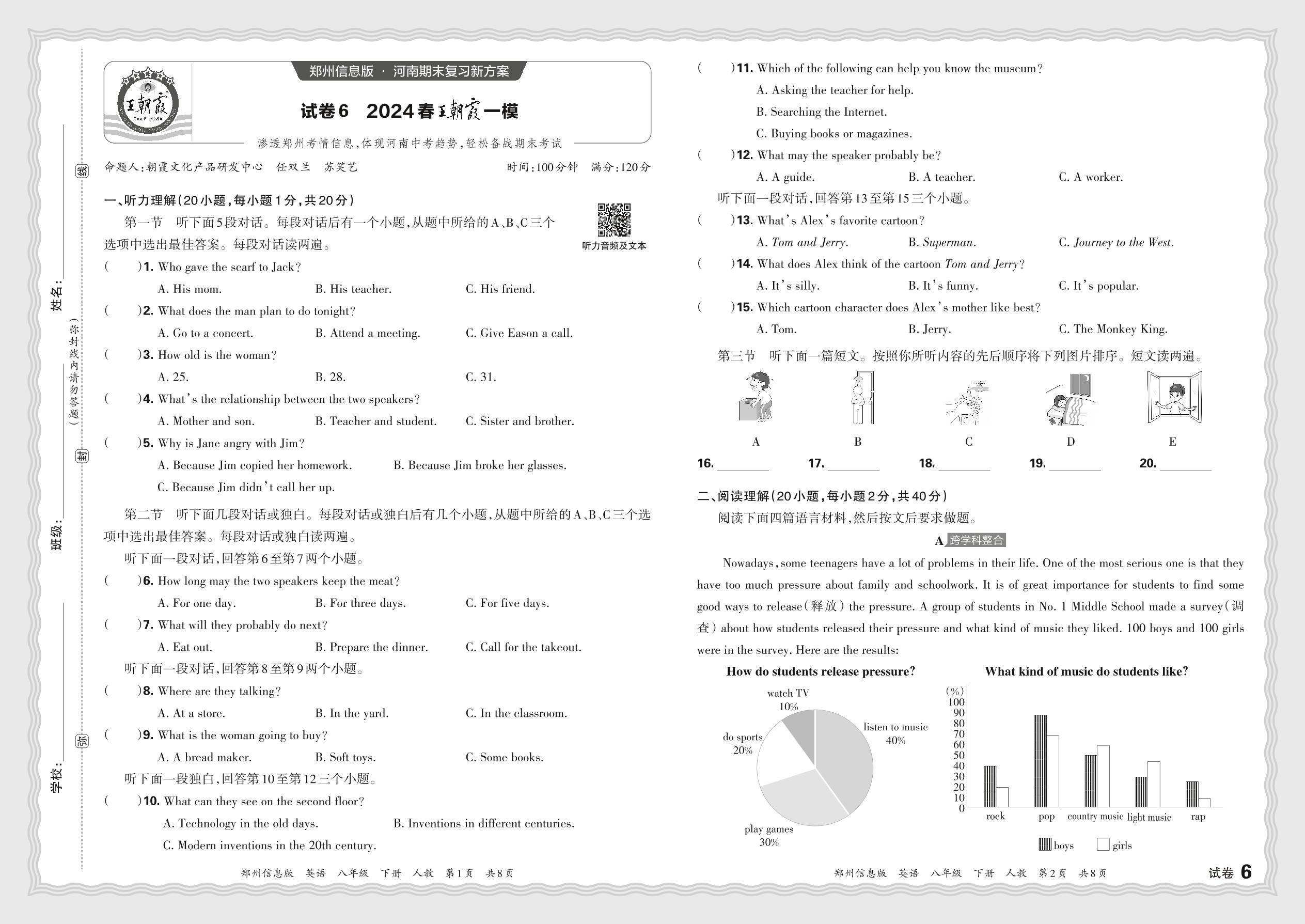 2024春下册八年级英语人教版 郑州期末王朝霞一模