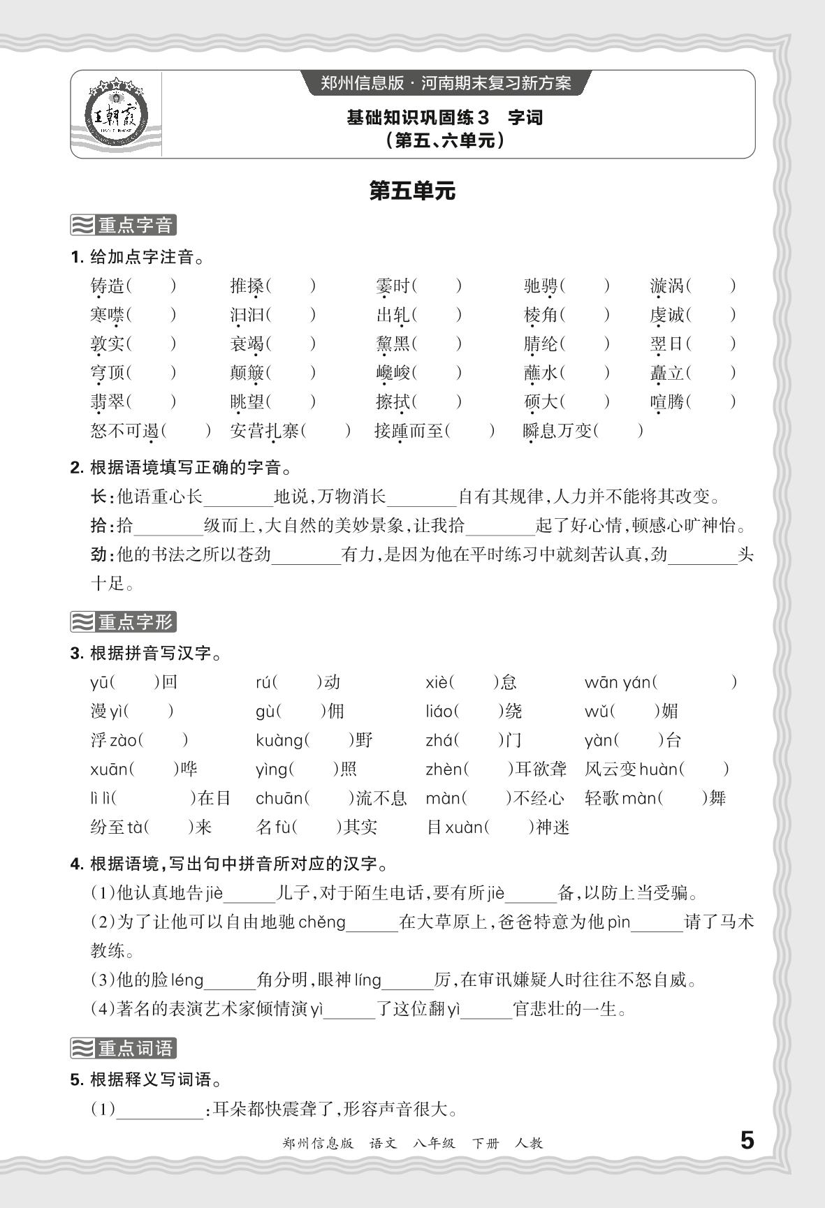 2024春下册八年级语文人教版 期末过课本郑州版·基础知识巩固练 字词(第五、六单元)【3】