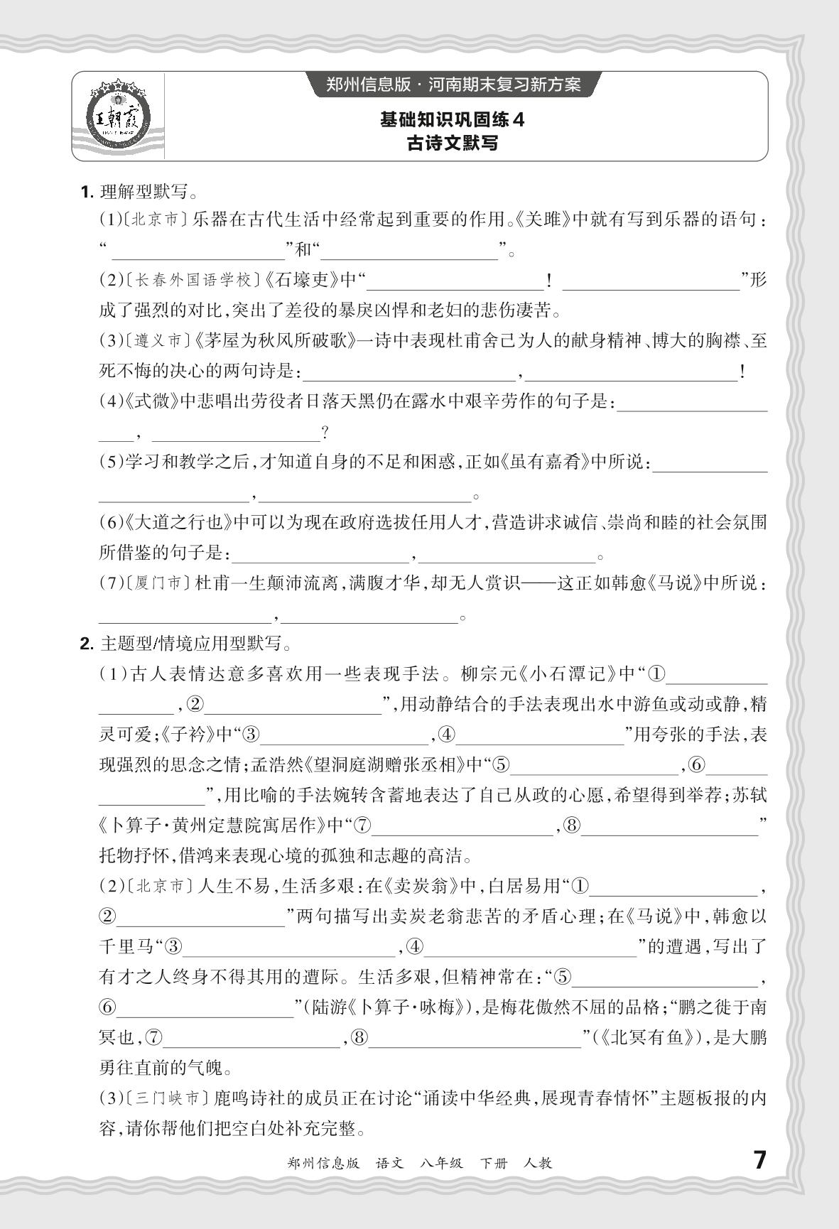 2024春下册八年级语文人教版 期末过课本郑州版·基础知识巩固练 古诗文默写【4】