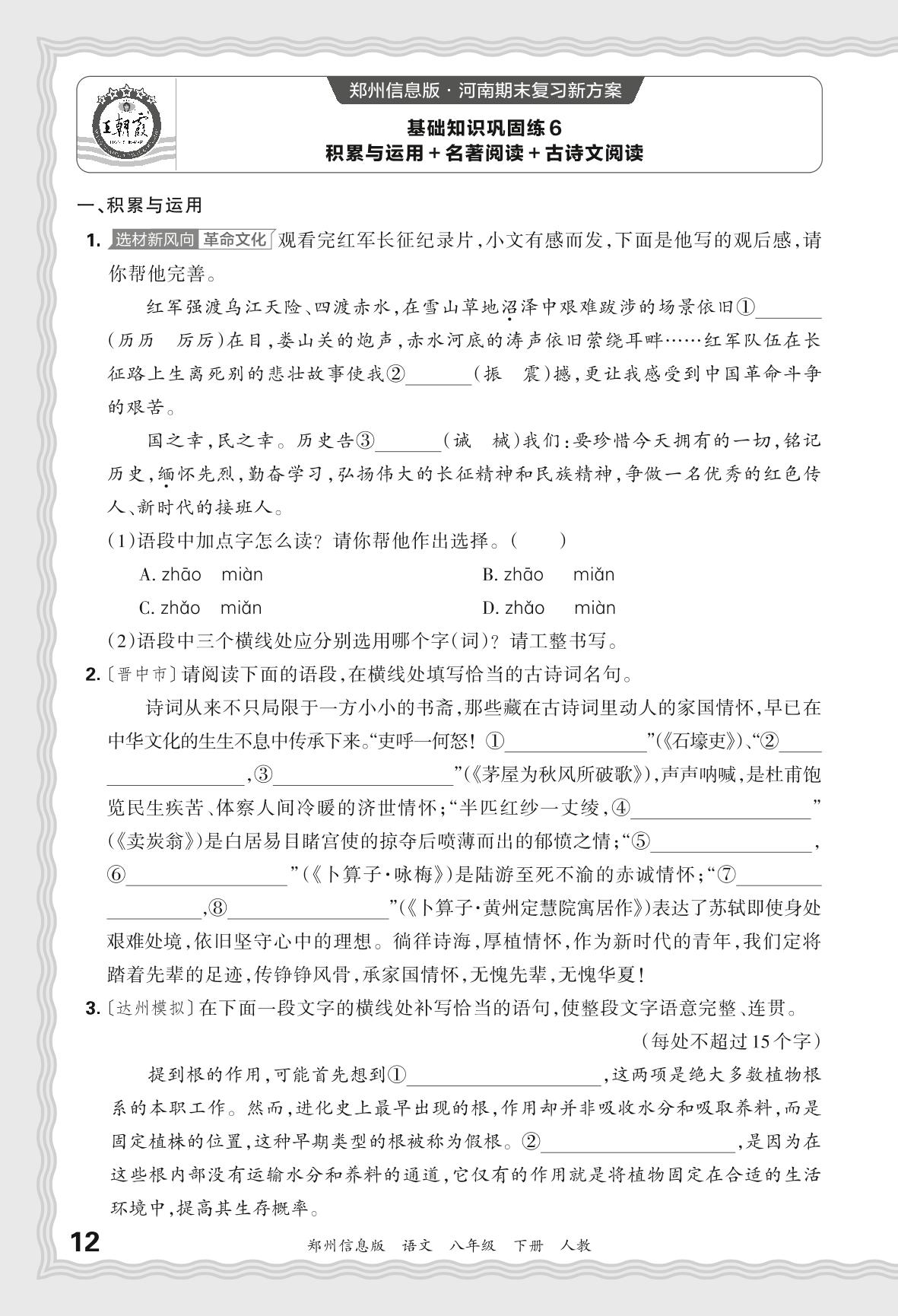 2024春下册八年级语文人教版 期末过课本郑州版·基础知识巩固练 积累运用+名著阅读+古诗文阅读【6】