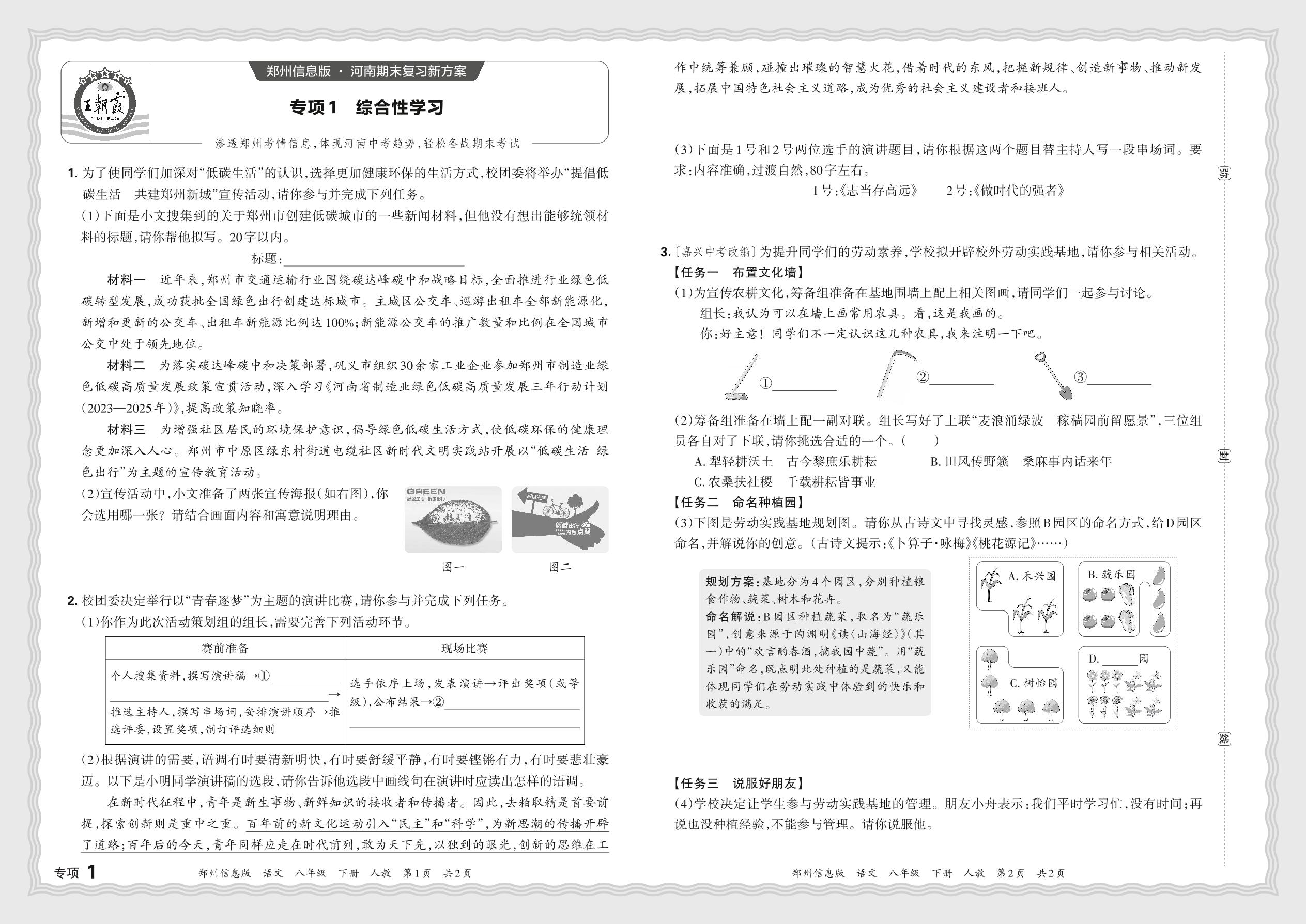2024春下册八年级语文人教版 期末专项卷郑州版·综合性学习【1】