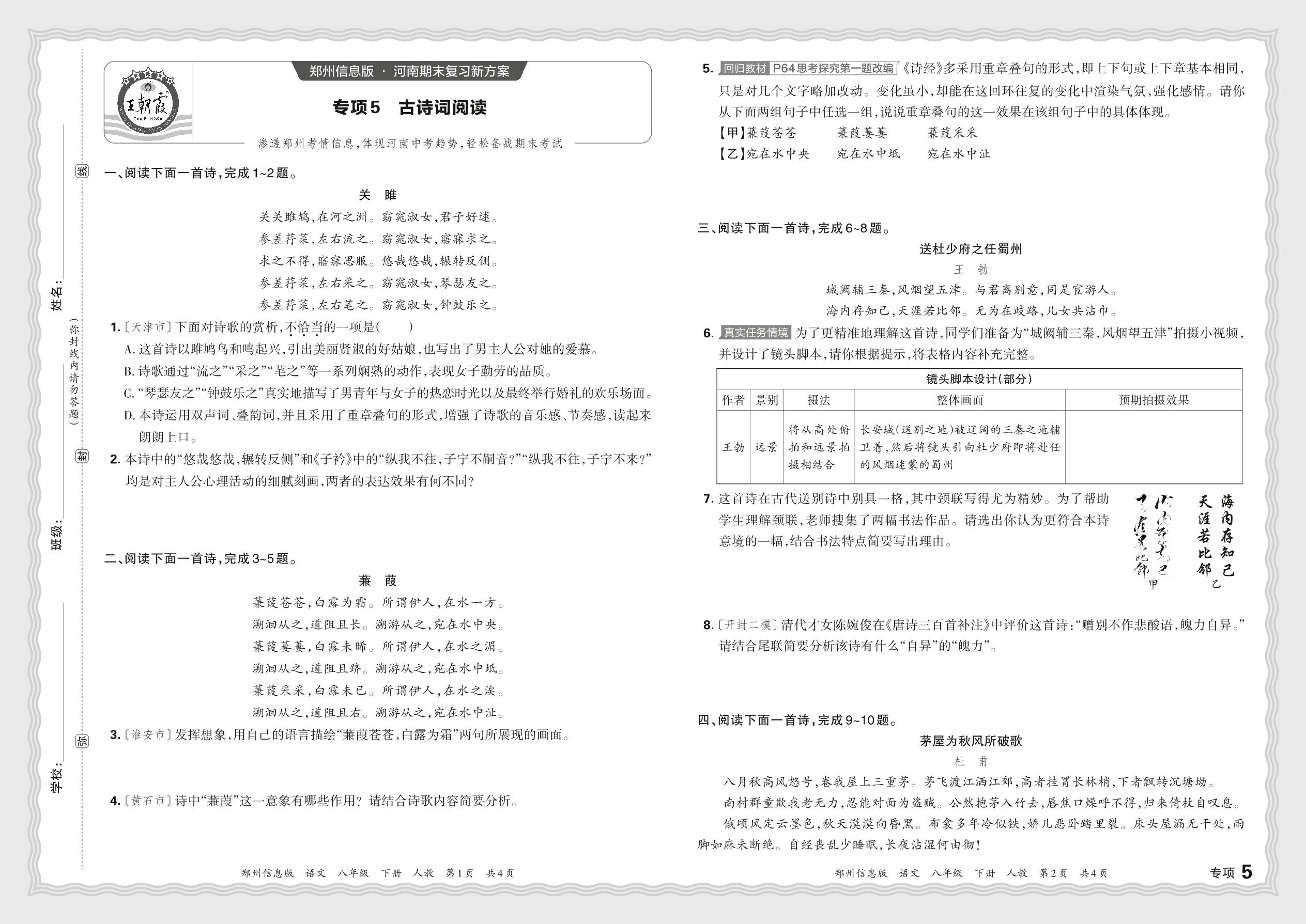 2024春下册八年级语文人教版 期末专项卷郑州版·古诗词阅读【5】