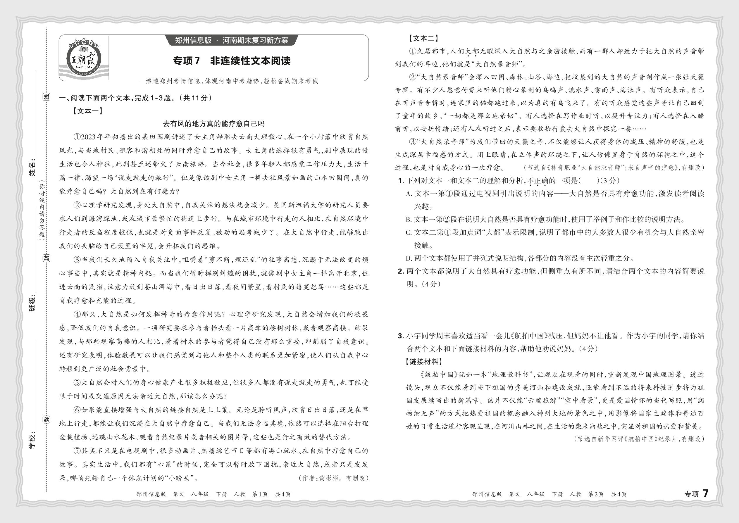 2024春下册八年级语文人教版 期末专项卷郑州版·非连续性文本阅读【7】