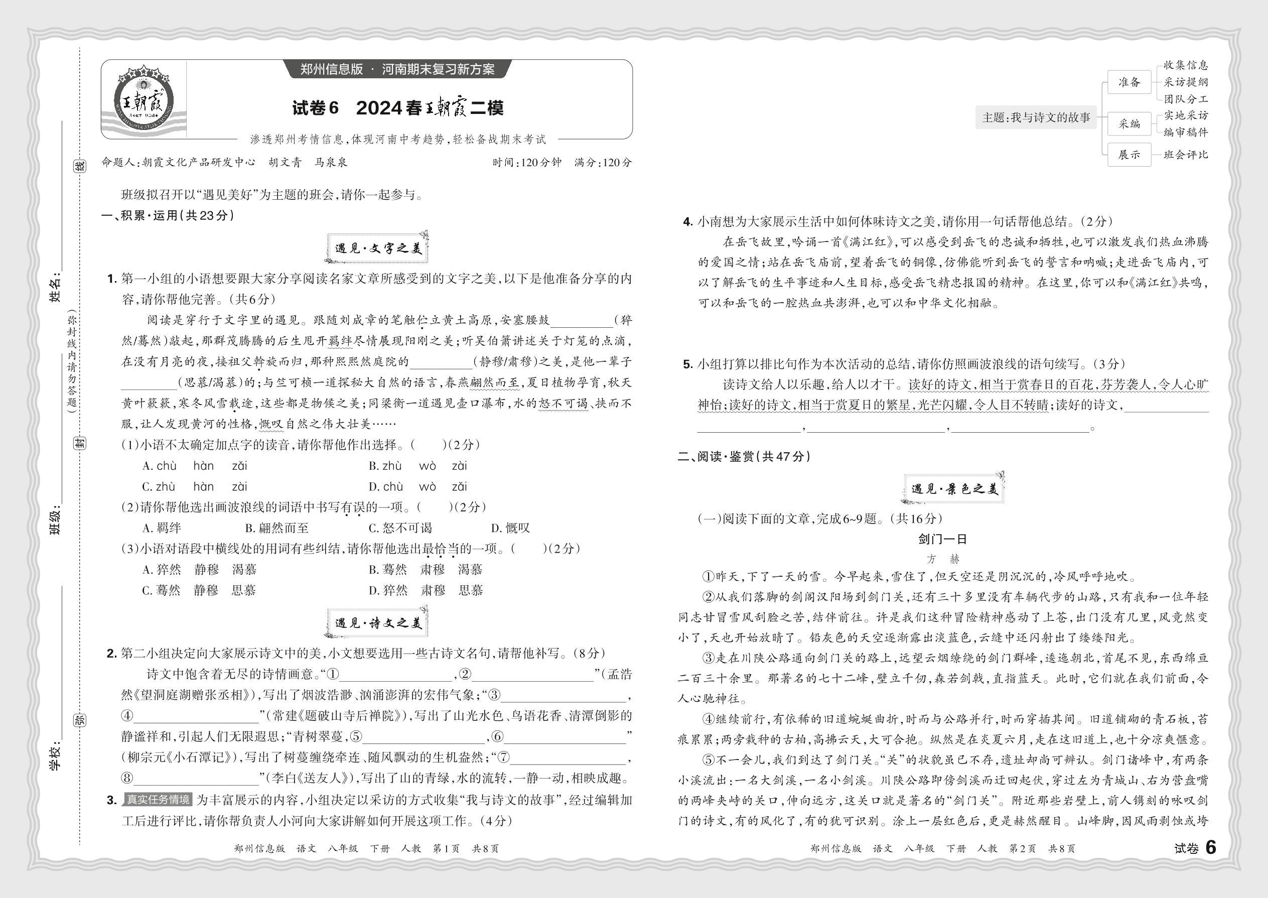 2024春下册八年级语文人教版 郑州期末王朝霞二模