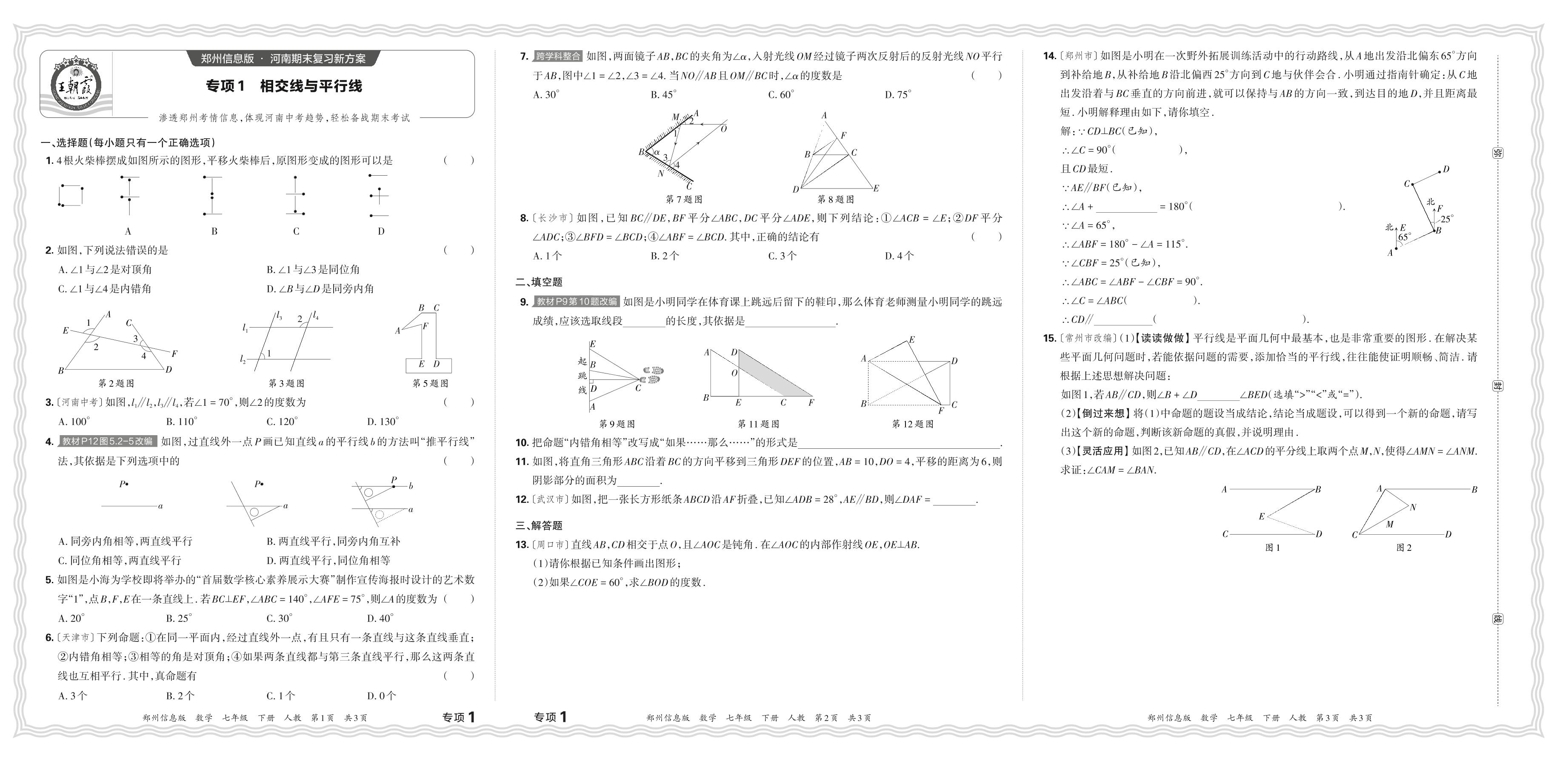 2024春下册七年级数学人教版 期末专项卷郑州版·相交线与平行线【1】