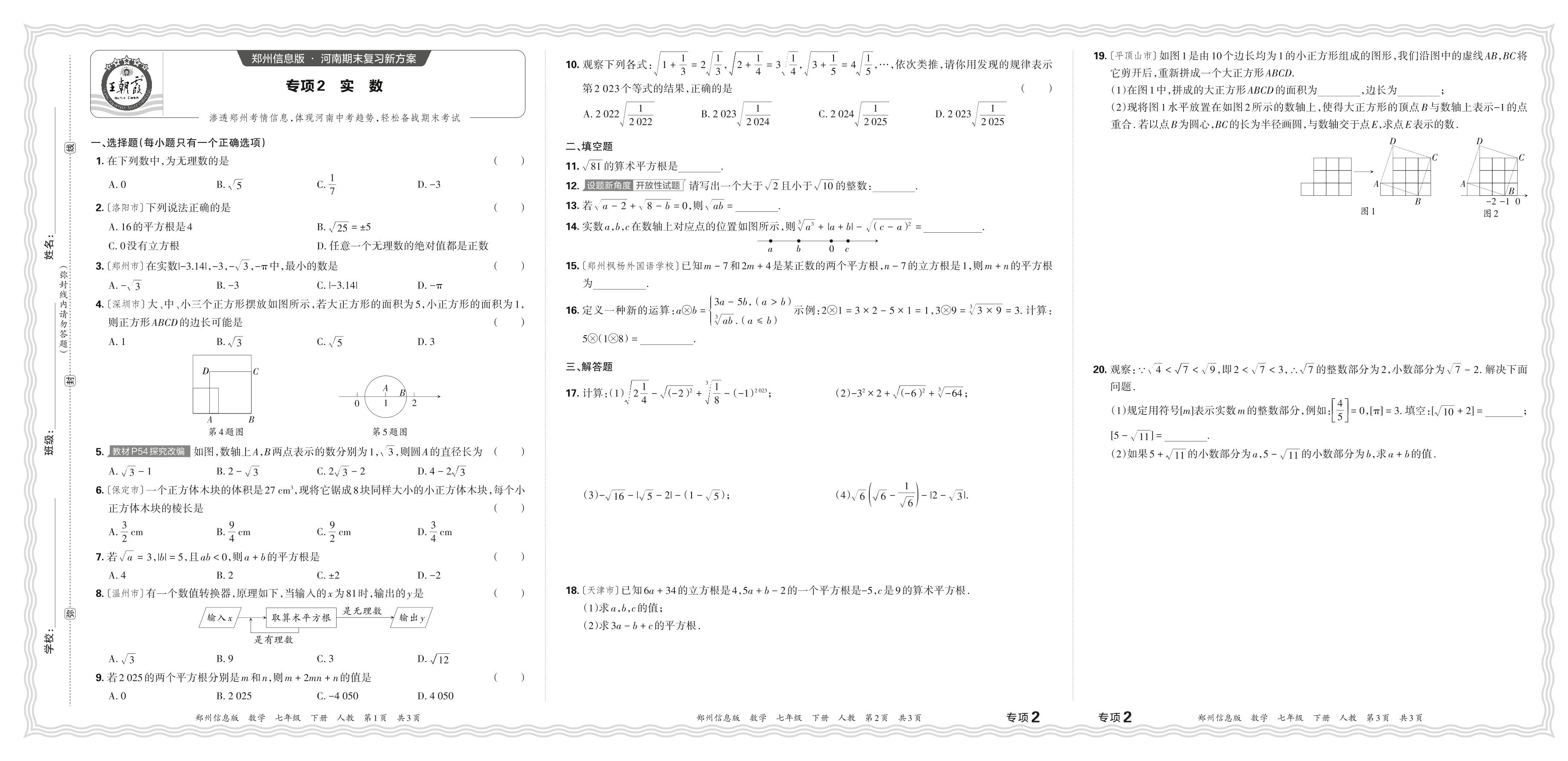 2024春下册七年级数学人教版 期末专项卷郑州版·实数【2】