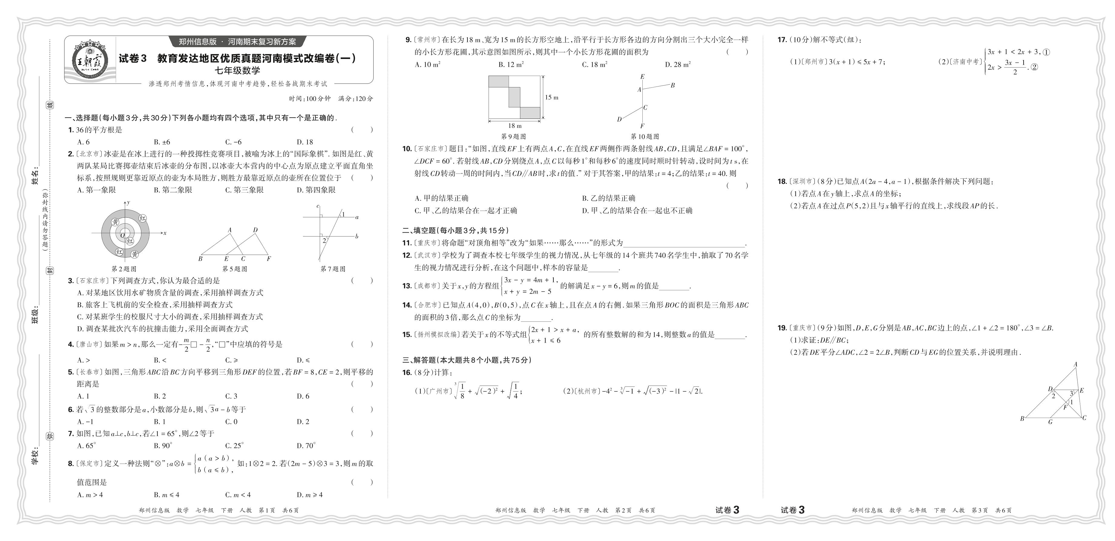 2024年春教育发达地区优质真题河南模式改编卷(一)七年级下册期末数学(人教版)【3】