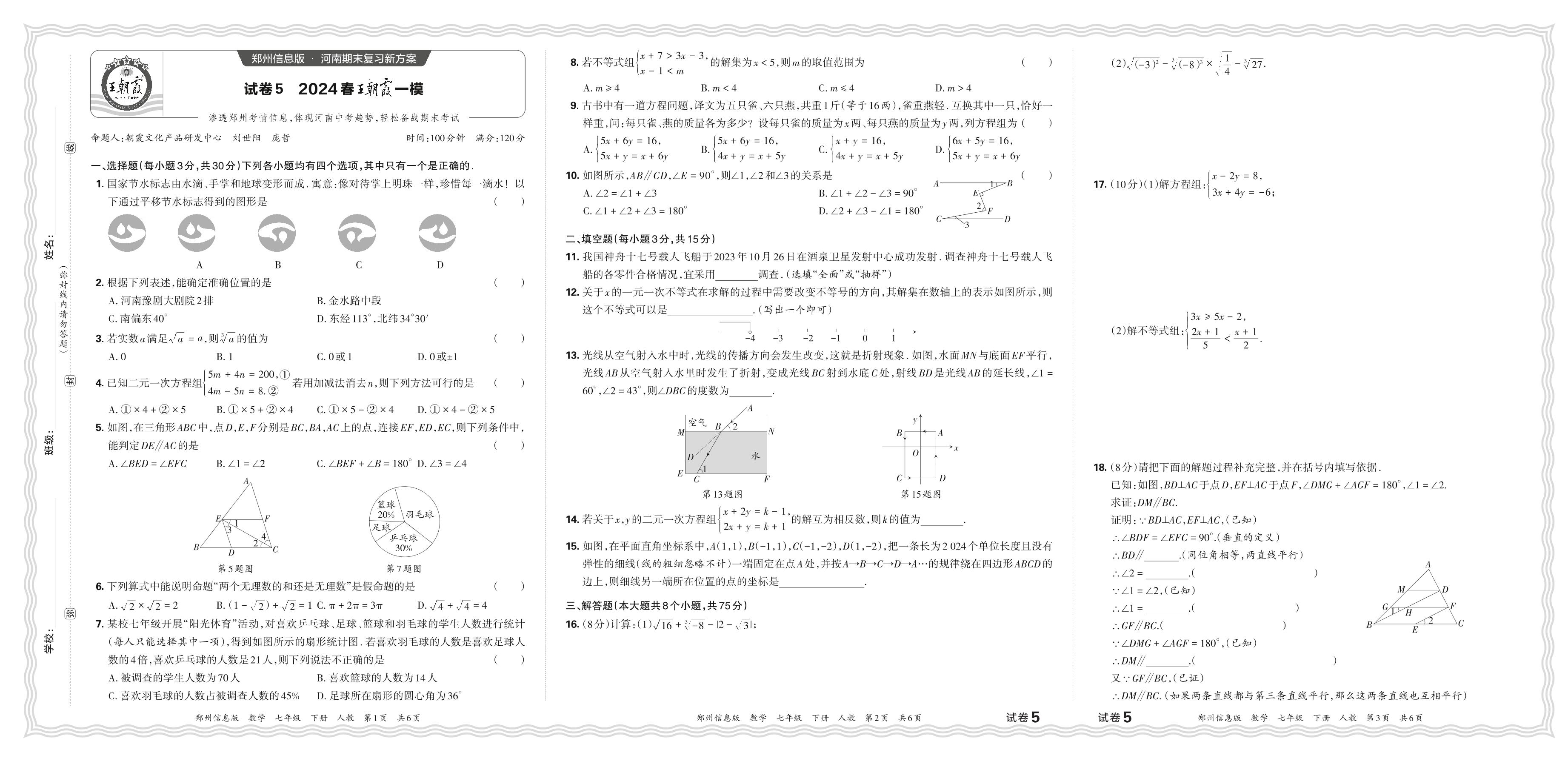 2024春下册七年级数学人教版 郑州期末王朝霞一模