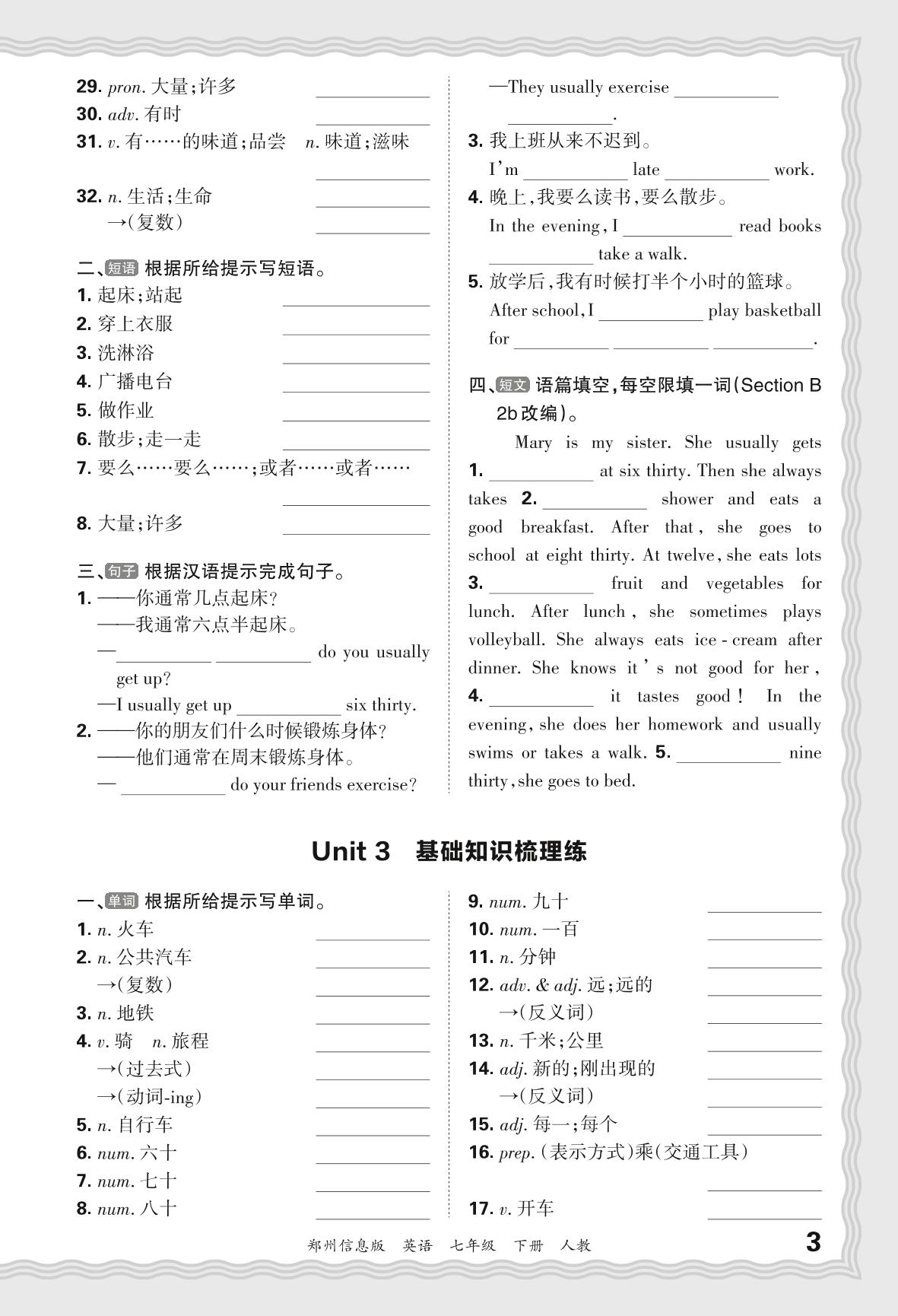 2024春下册七年级英语人教版 期末过课本郑州版·Unit 3 基础知识梳理练