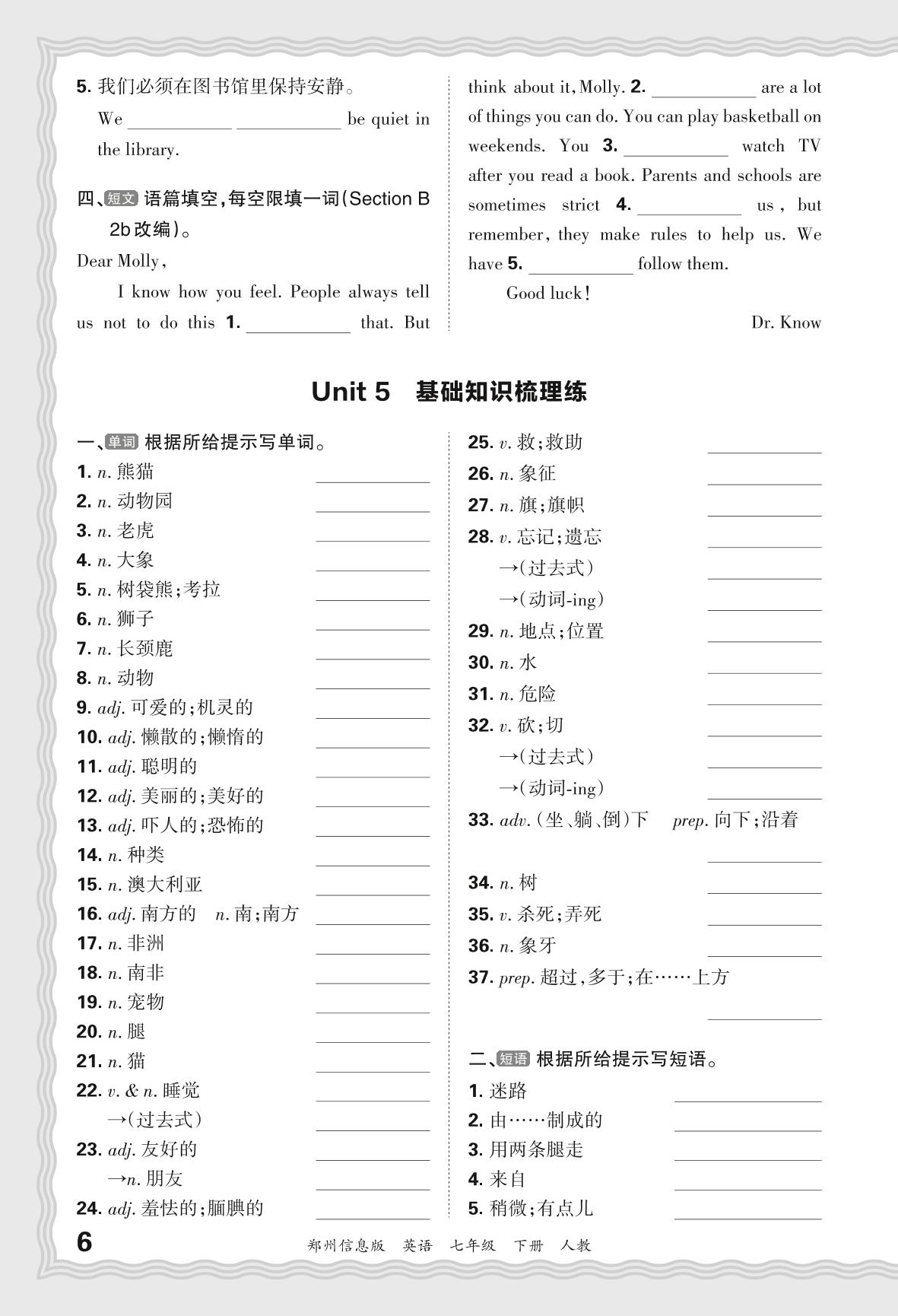 2024春下册七年级英语人教版 期末过课本郑州版·Unit 5 基础知识梳理练