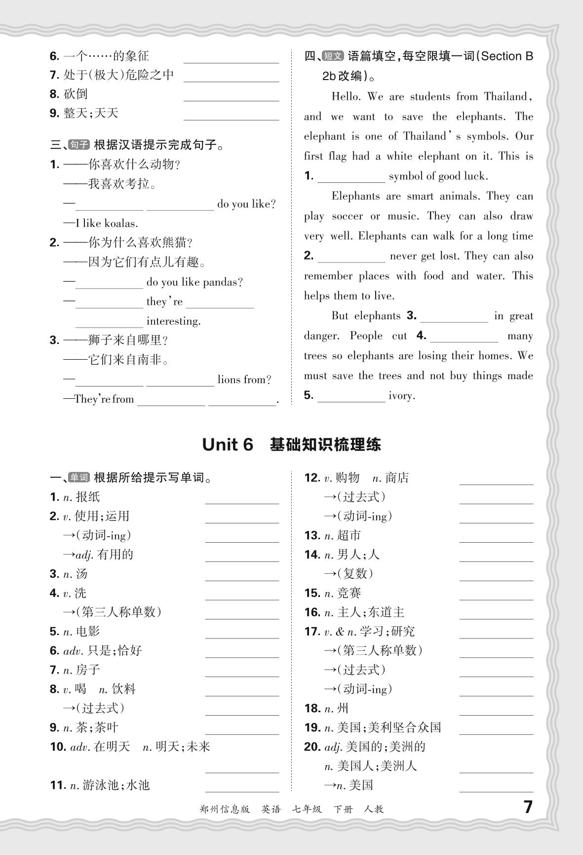 2024春下册七年级英语人教版 期末过课本郑州版·Unit 6 基础知识梳理练