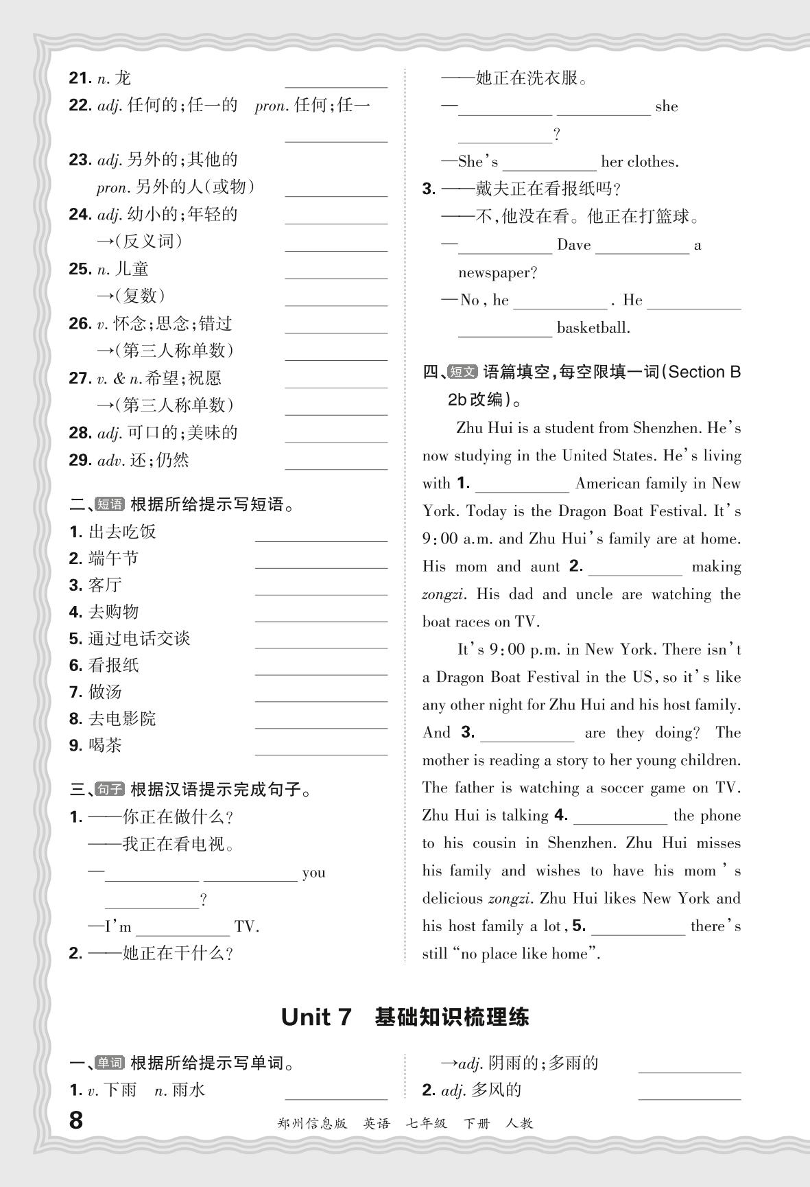 2024春下册七年级英语人教版 期末过课本郑州版·Unit 7 基础知识梳理练