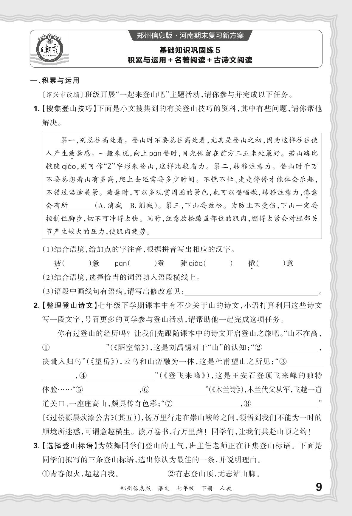 2024春下册七年级语文人教版 期末过课本郑州版·基础知识巩固练 积累运用+名著阅读+古诗文阅读【5】