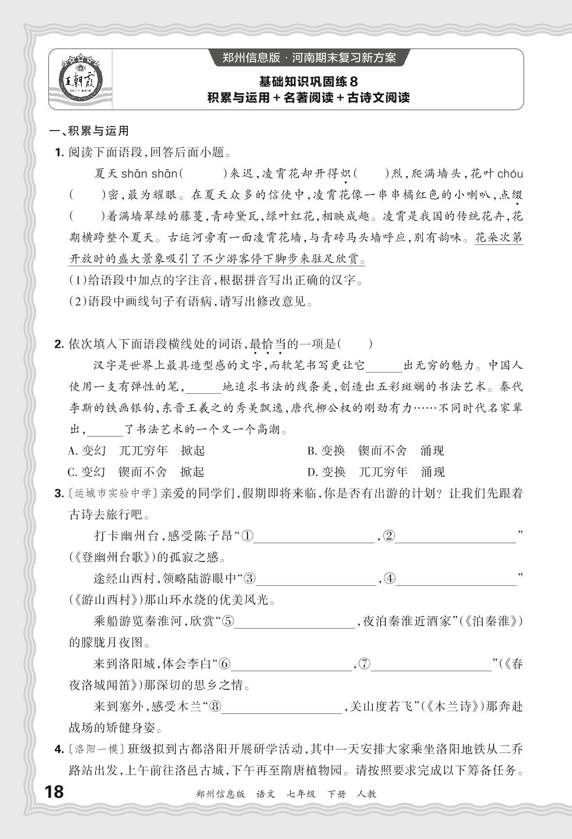 2024春下册七年级语文人教版 期末过课本郑州版·基础知识巩固练 积累运用+名著阅读+古诗文阅读【8】