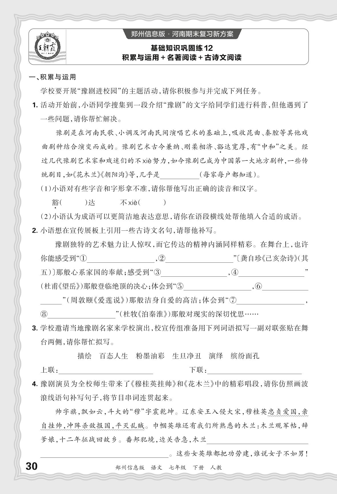 2024春下册七年级语文人教版 期末过课本郑州版·基础知识巩固练 积累运用+名著阅读+古诗文阅读【12】