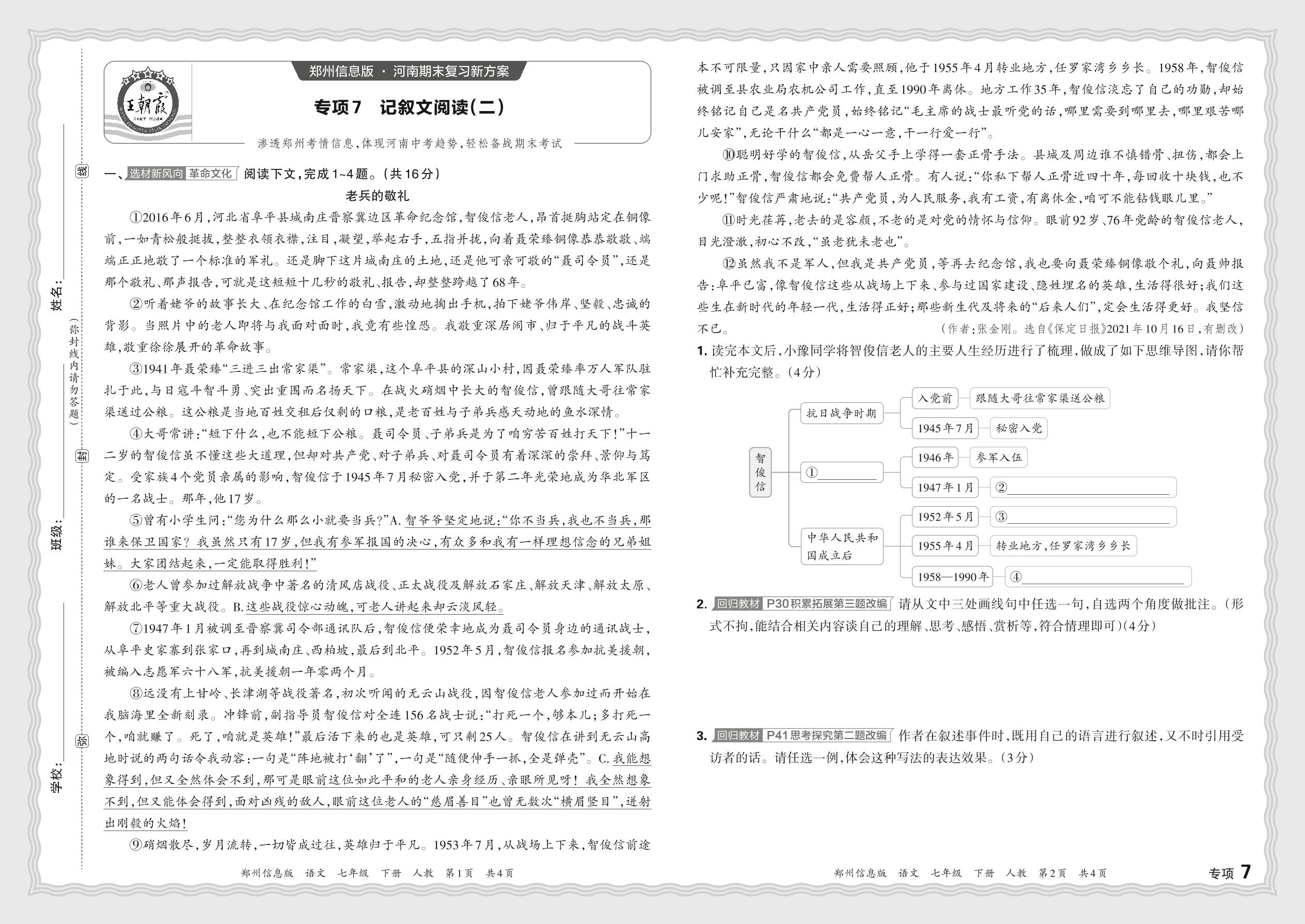 2024春下册七年级语文人教版 期末专项卷郑州版·记叙文阅读(二)【7】