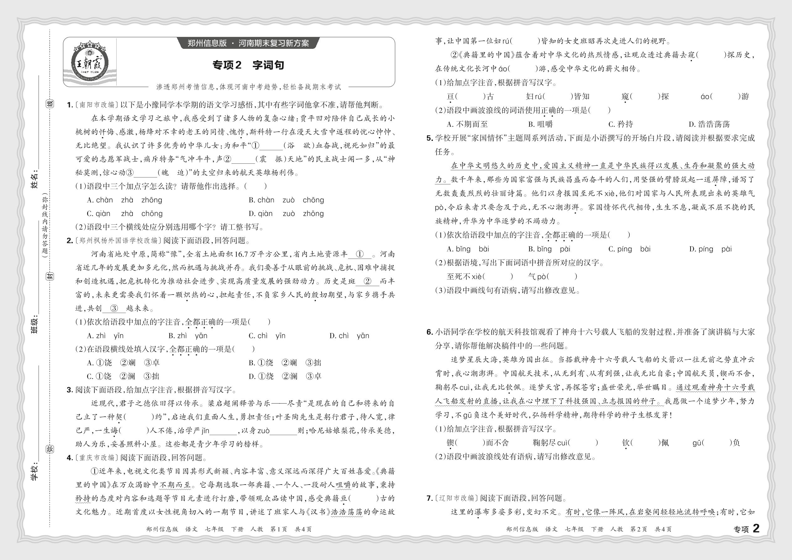 2024春下册七年级语文人教版 期末专项卷郑州版·字词句【2】