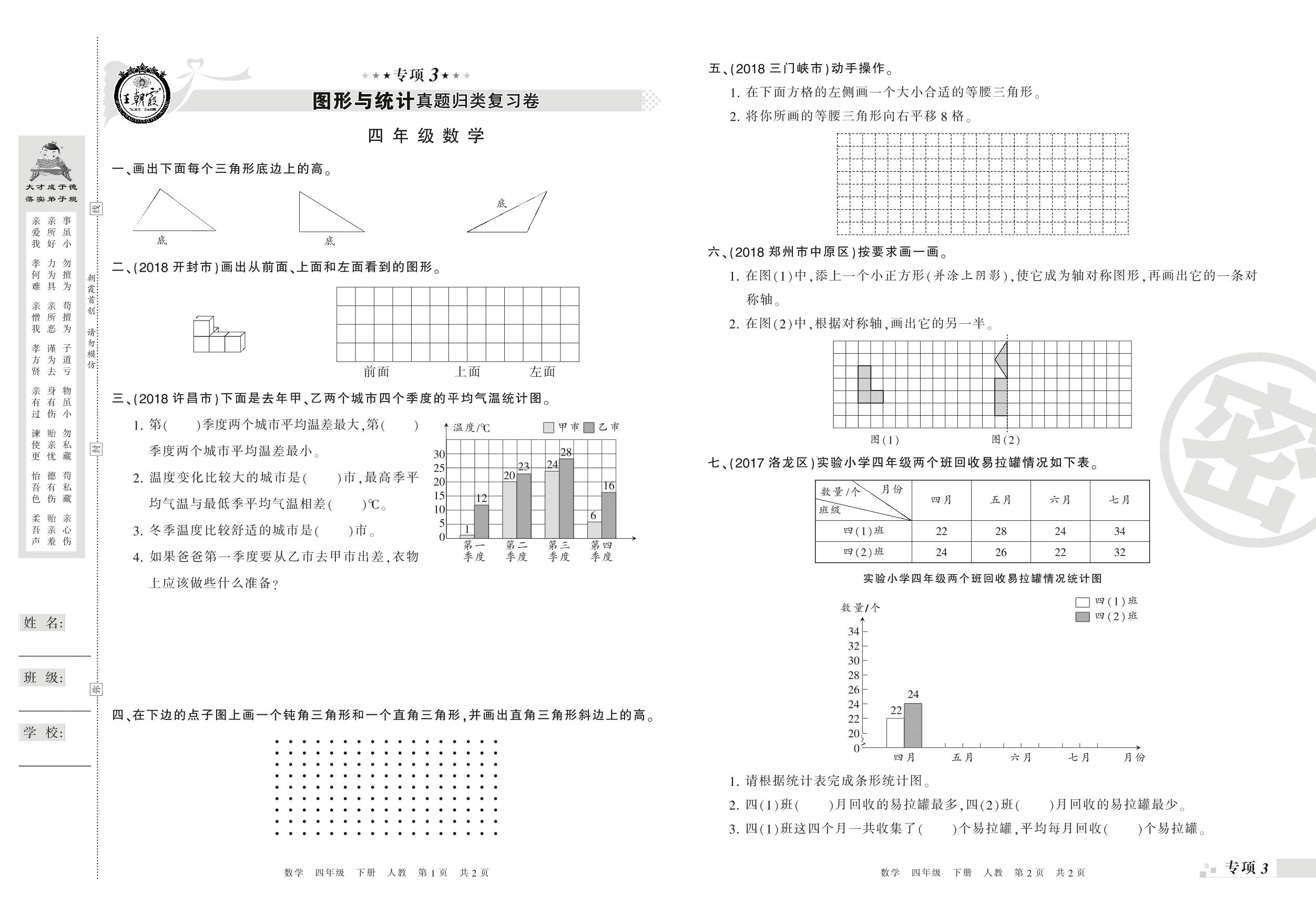 王朝霞期末专项卷——图形与统计、解决问题真题归类复习卷四年级下册数学(人教版)_R210804144327【0】