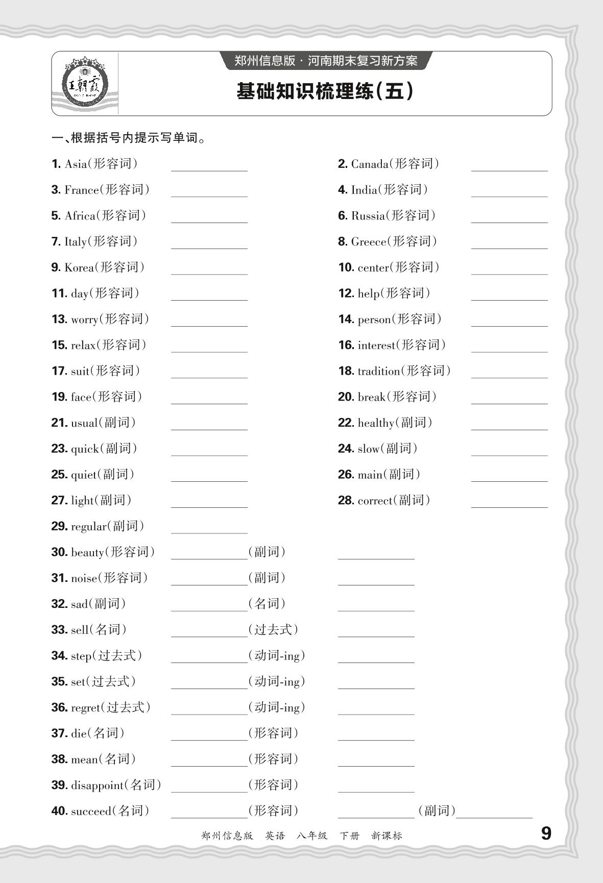 2024春下册八年级英语新课标版 期末过课本郑州版·基础知识梳理练(五)