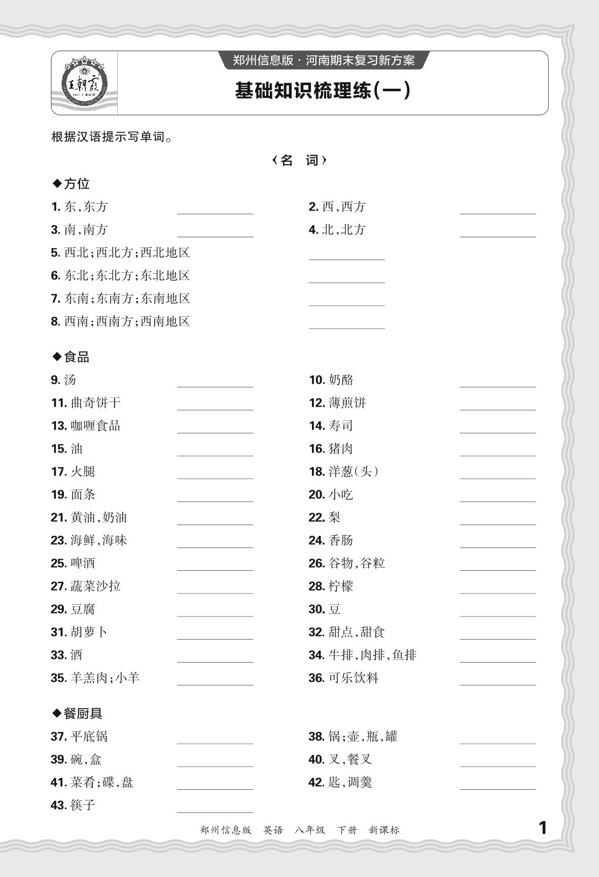 2024春下册八年级英语新课标版 期末过课本郑州版·基础知识梳理练(一)