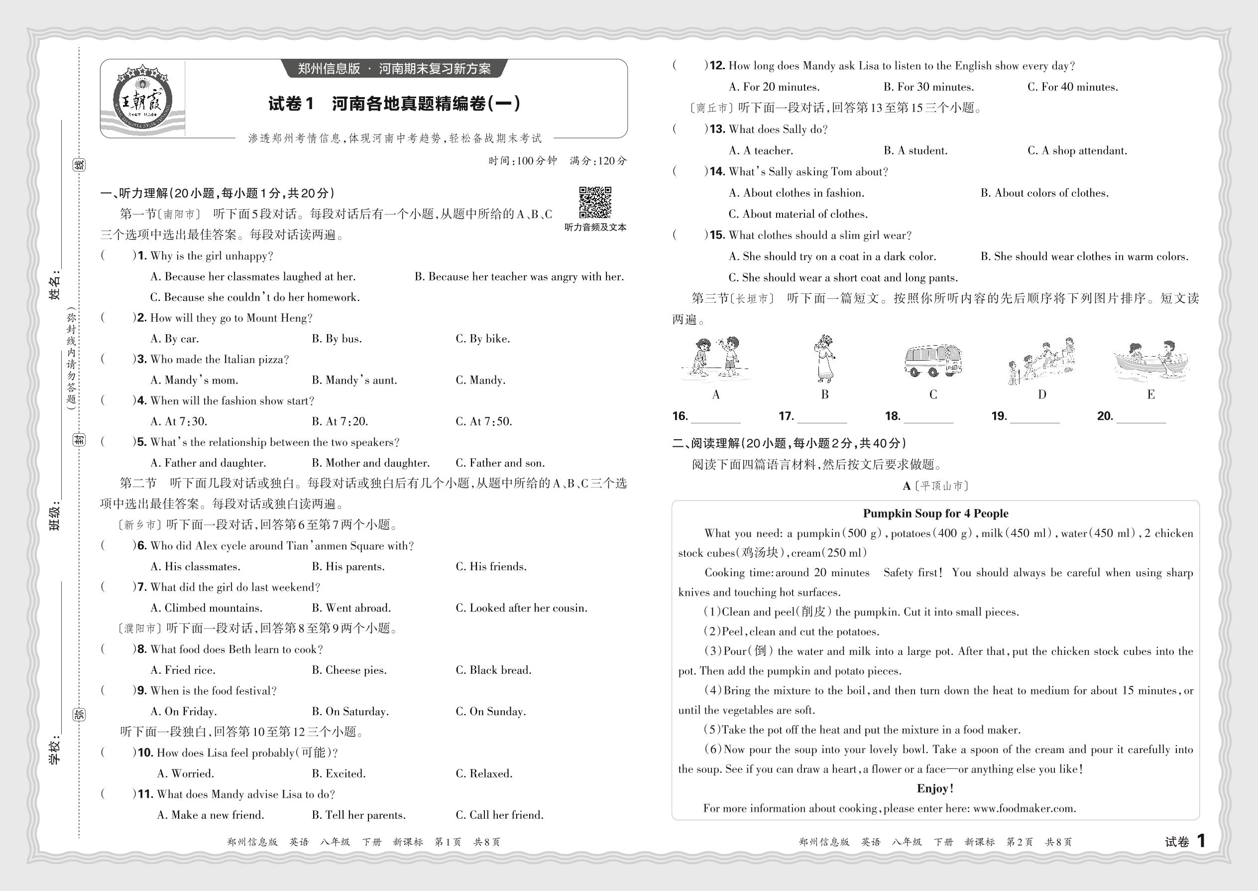 2024年春河南各地真题精编(一)八年级下册期末英语(新课标版)【1】