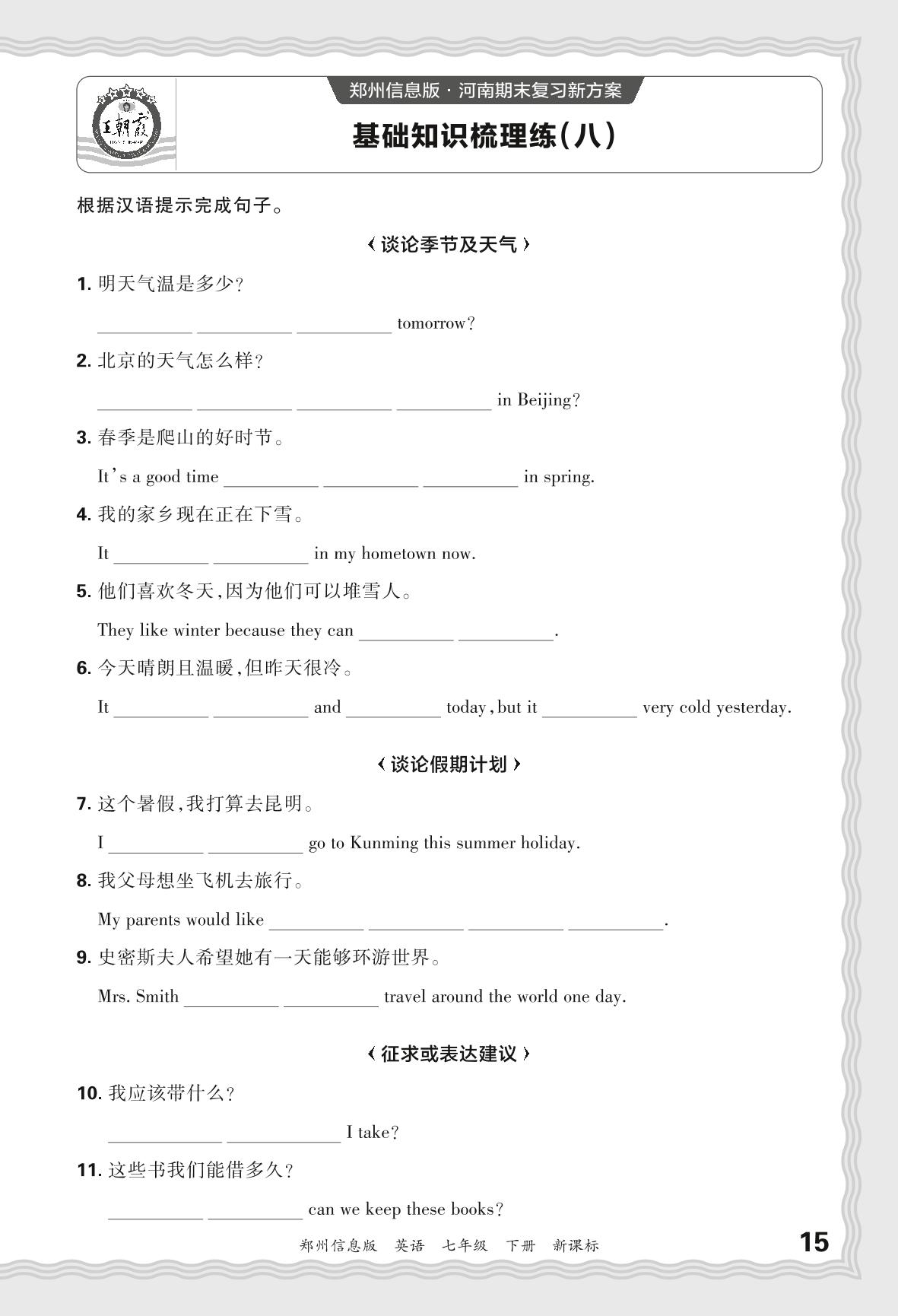 2024春下册七年级英语新课标版 期末过课本郑州版·基础知识梳理练(八)