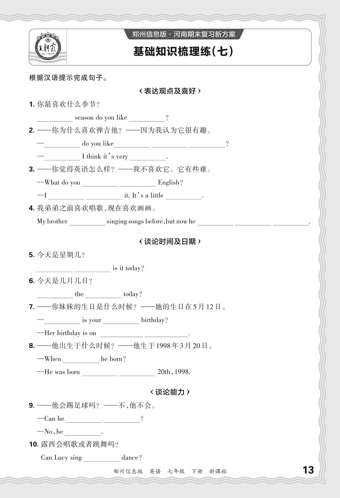2024春下册七年级英语新课标版 期末过课本郑州版·基础知识梳理练(七)