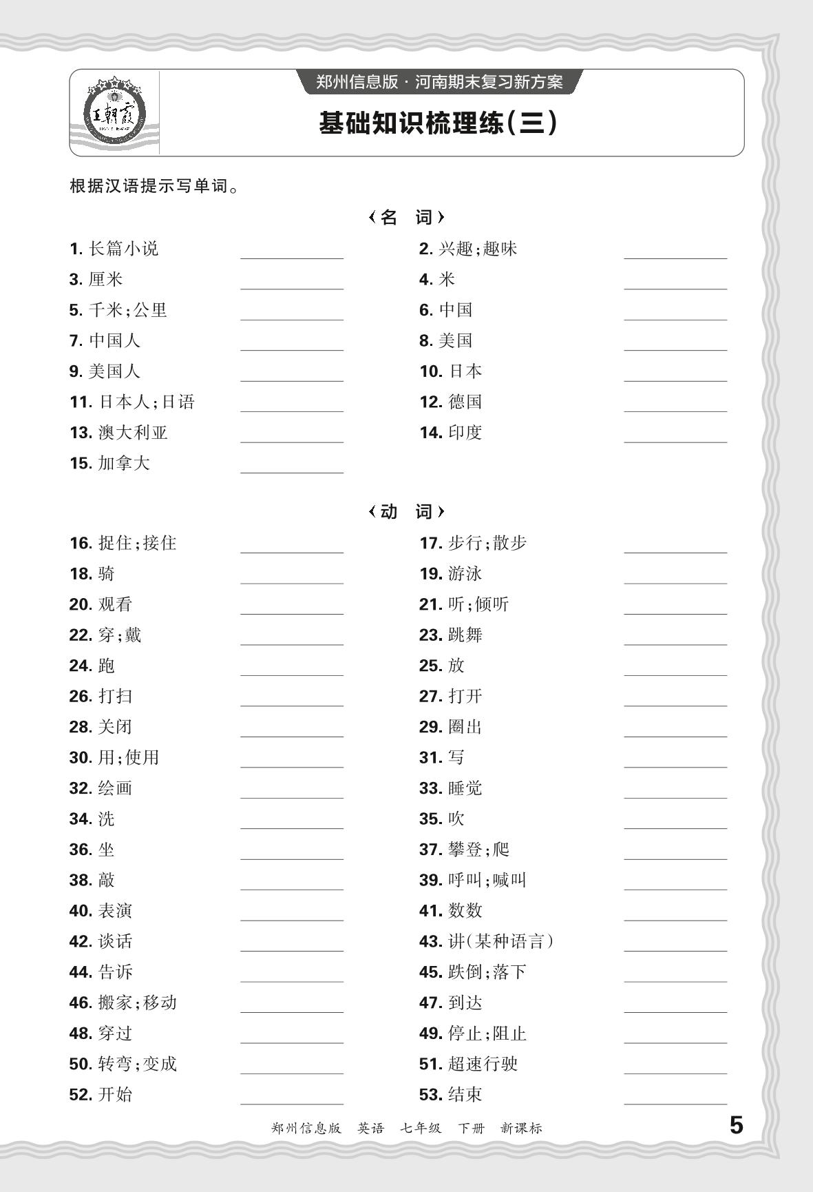 2024春下册七年级英语新课标版 期末过课本郑州版·基础知识梳理练(三)