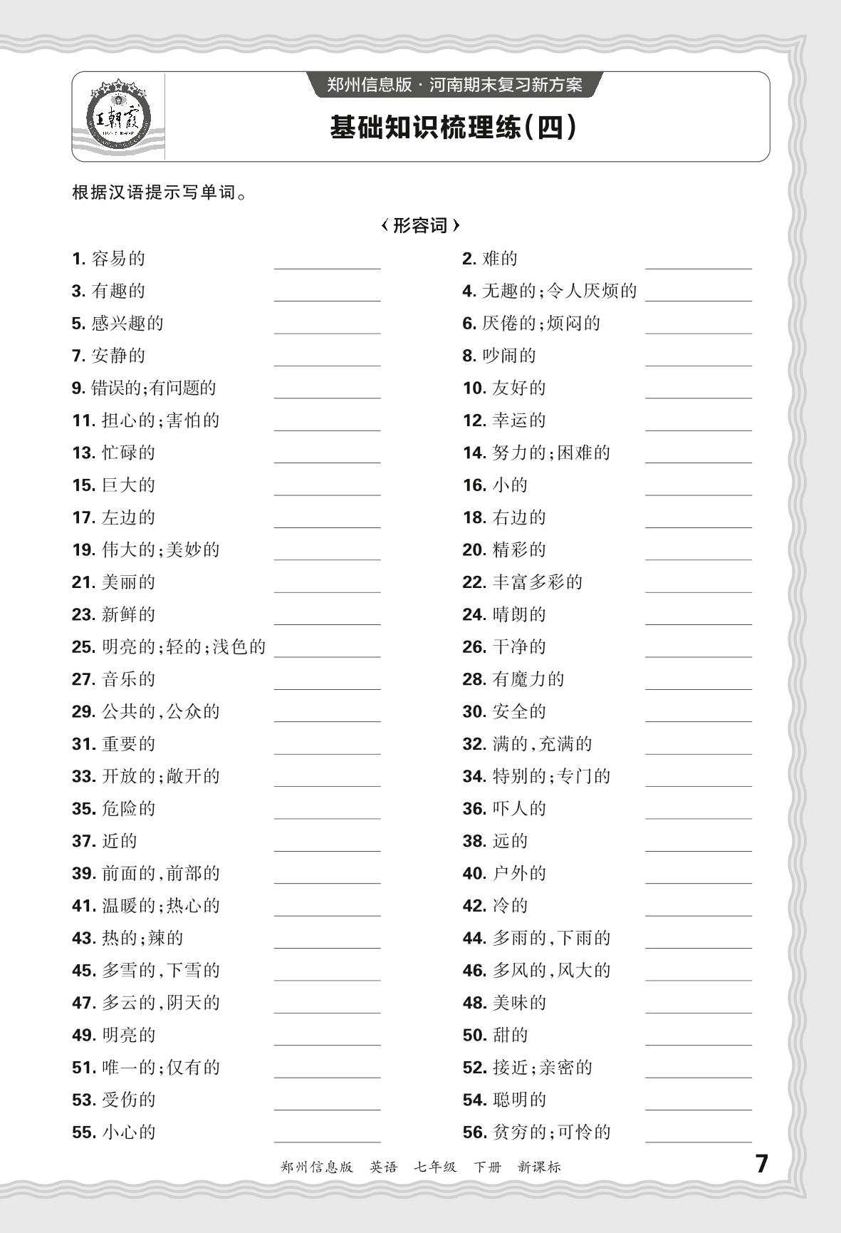 2024春下册七年级英语新课标版 期末过课本郑州版·基础知识梳理练(四)