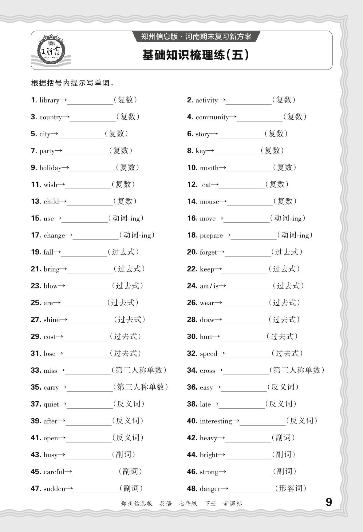 2024春下册七年级英语新课标版 期末过课本郑州版·基础知识梳理练(五)