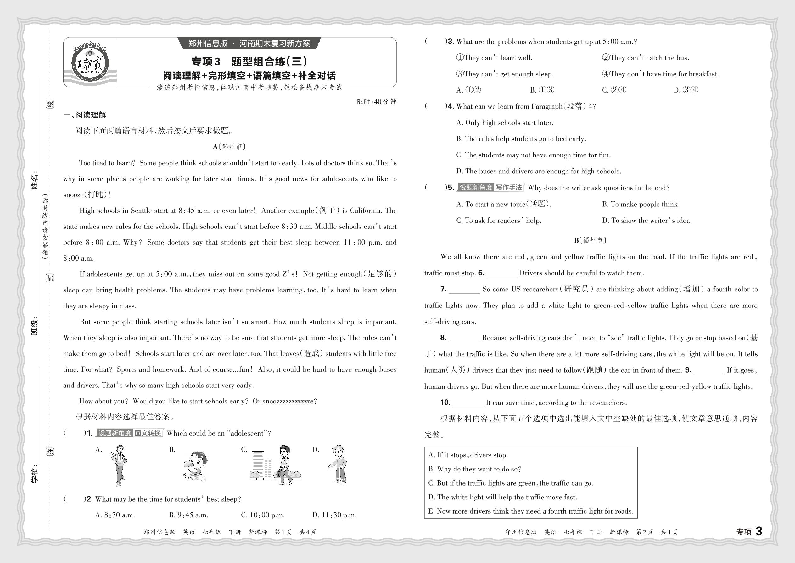 2024春下册七年级英语新课标版 期末专项卷郑州版·题型组合练(三)