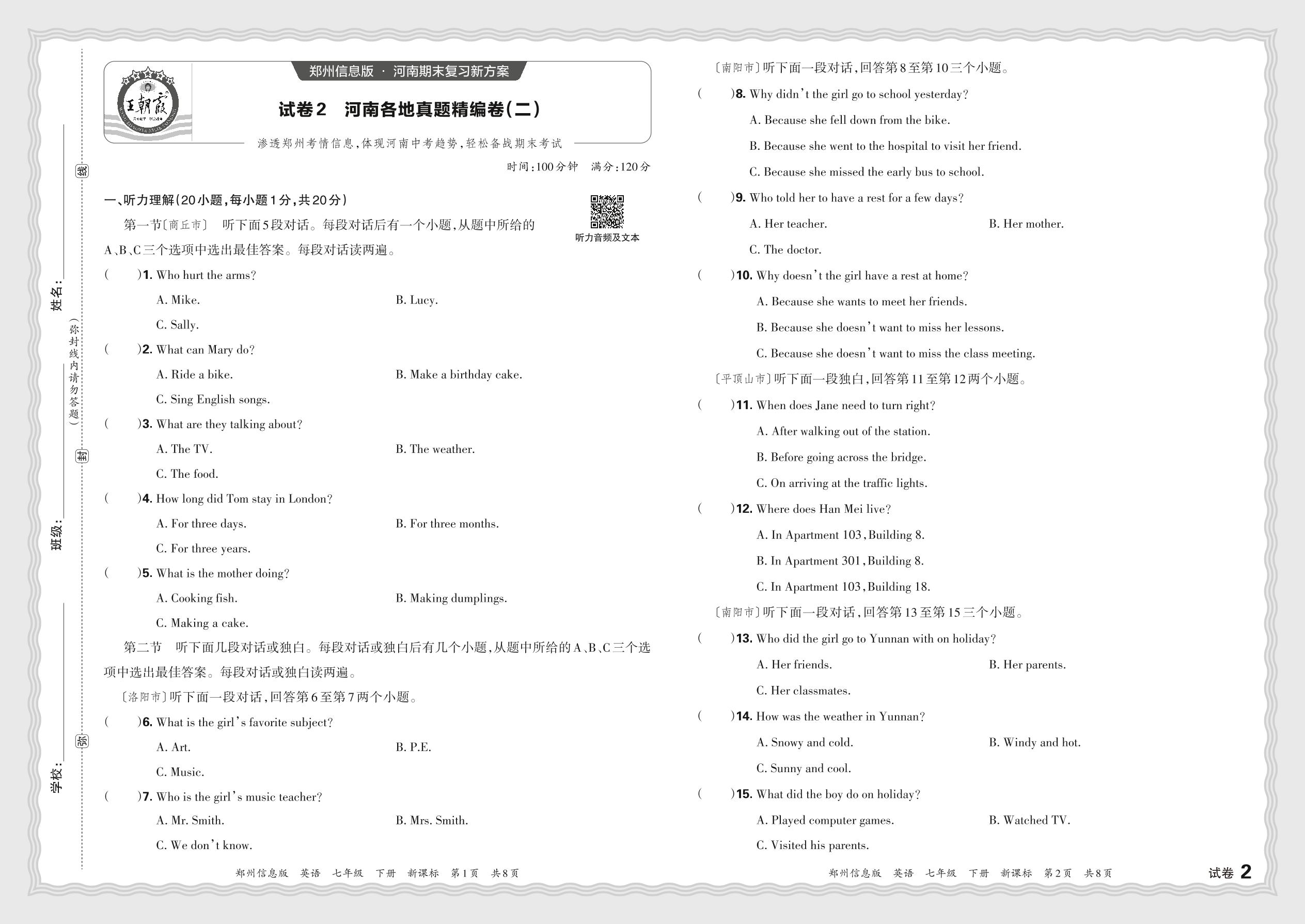 2024年春河南各地真题精编(二)七年级下册期末英语(新课标版)【2】